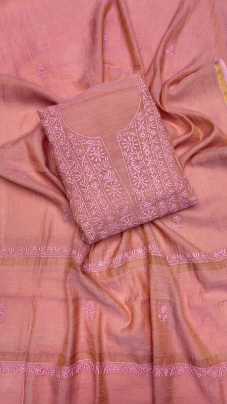 BLUSH CORAL CHANDERI SILK CHIKANKARI KURTA & DUPATTA FABRIC