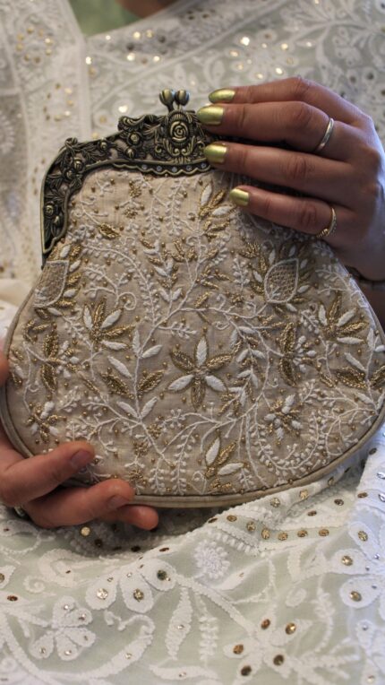 BEIGE CHIKANKARI CLUTCH