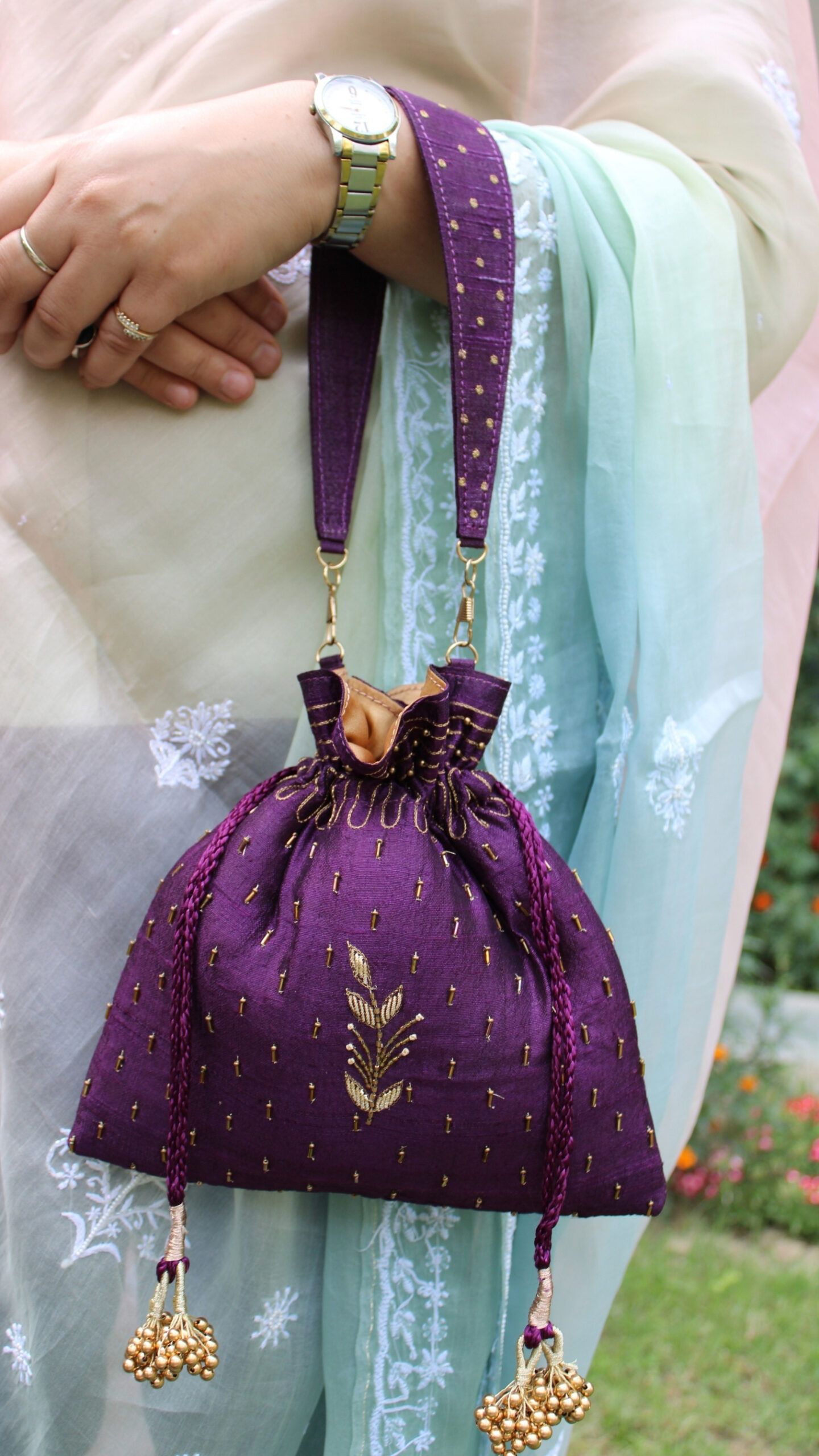 AUBERGINE ZARDOZI & MUKAISH POTLI