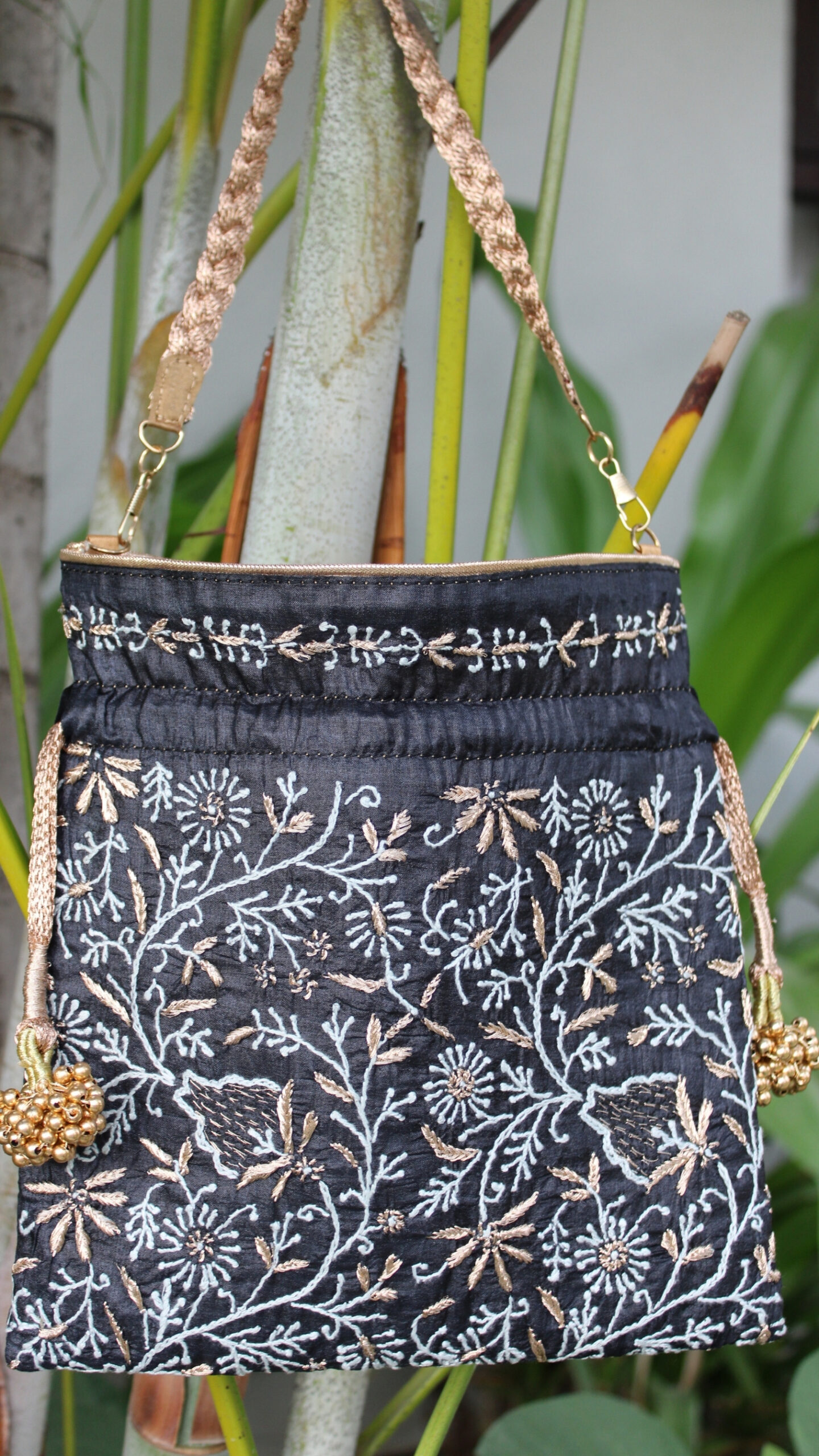 BLACK CHIKANKARI POTLI