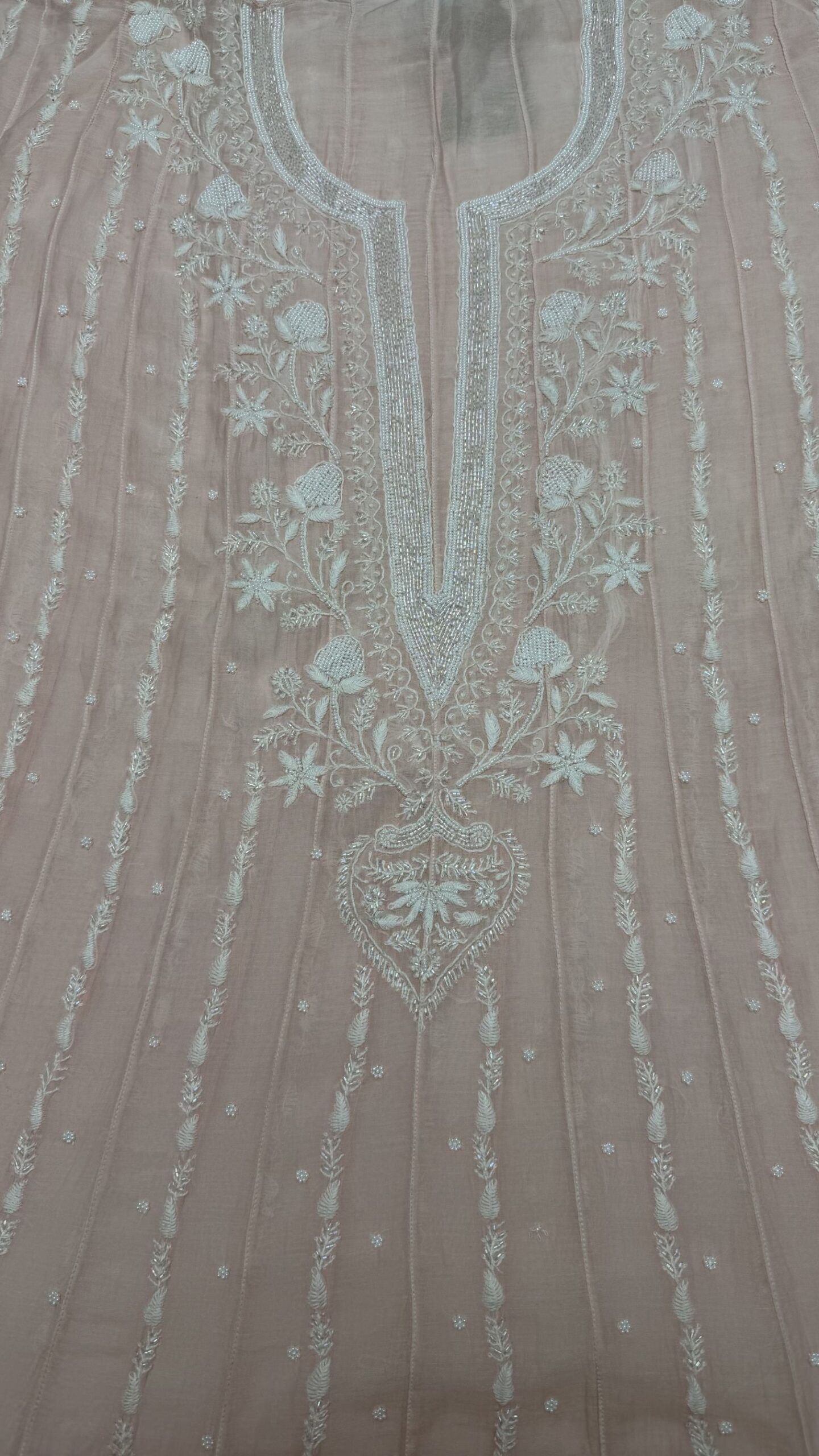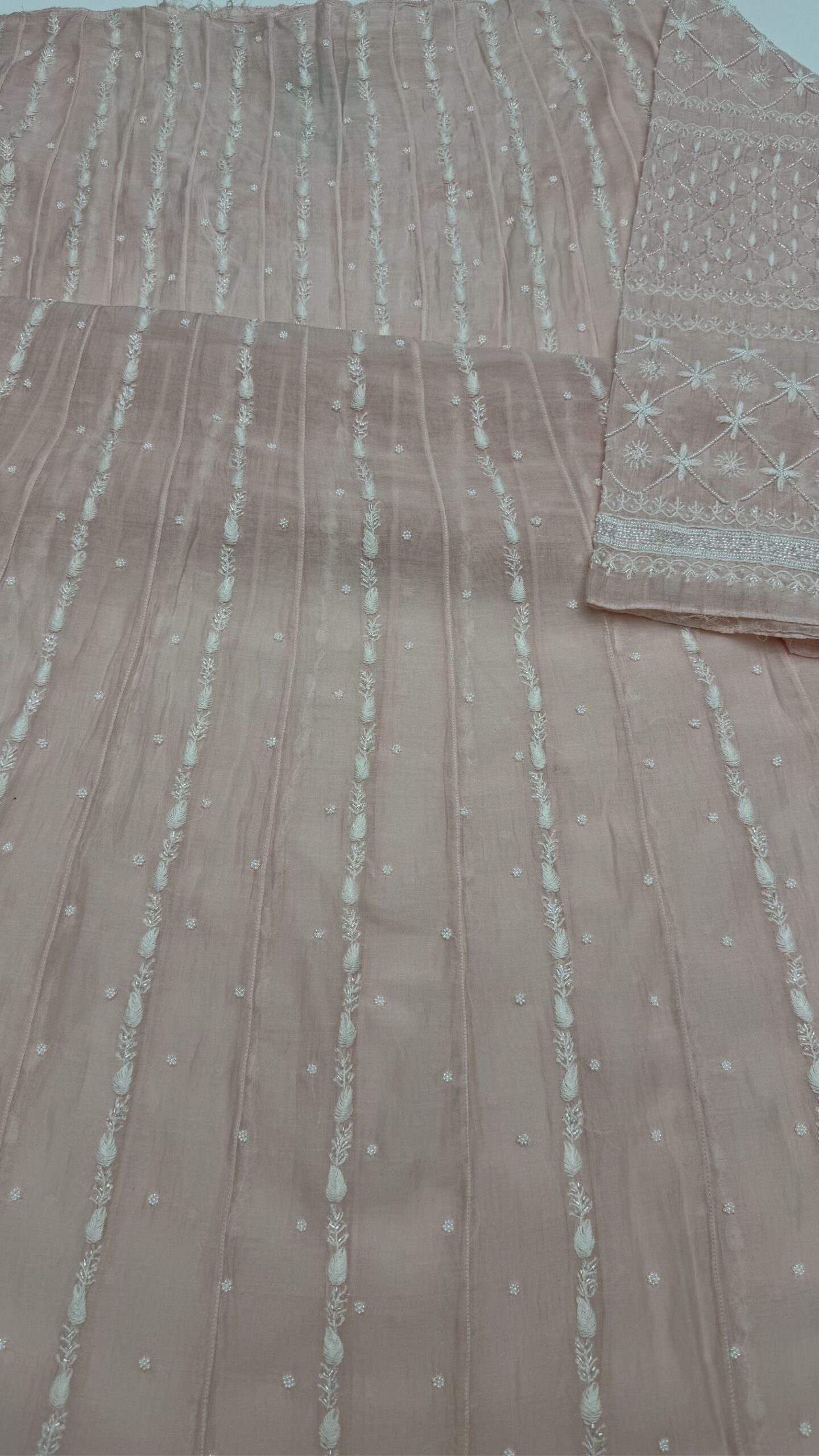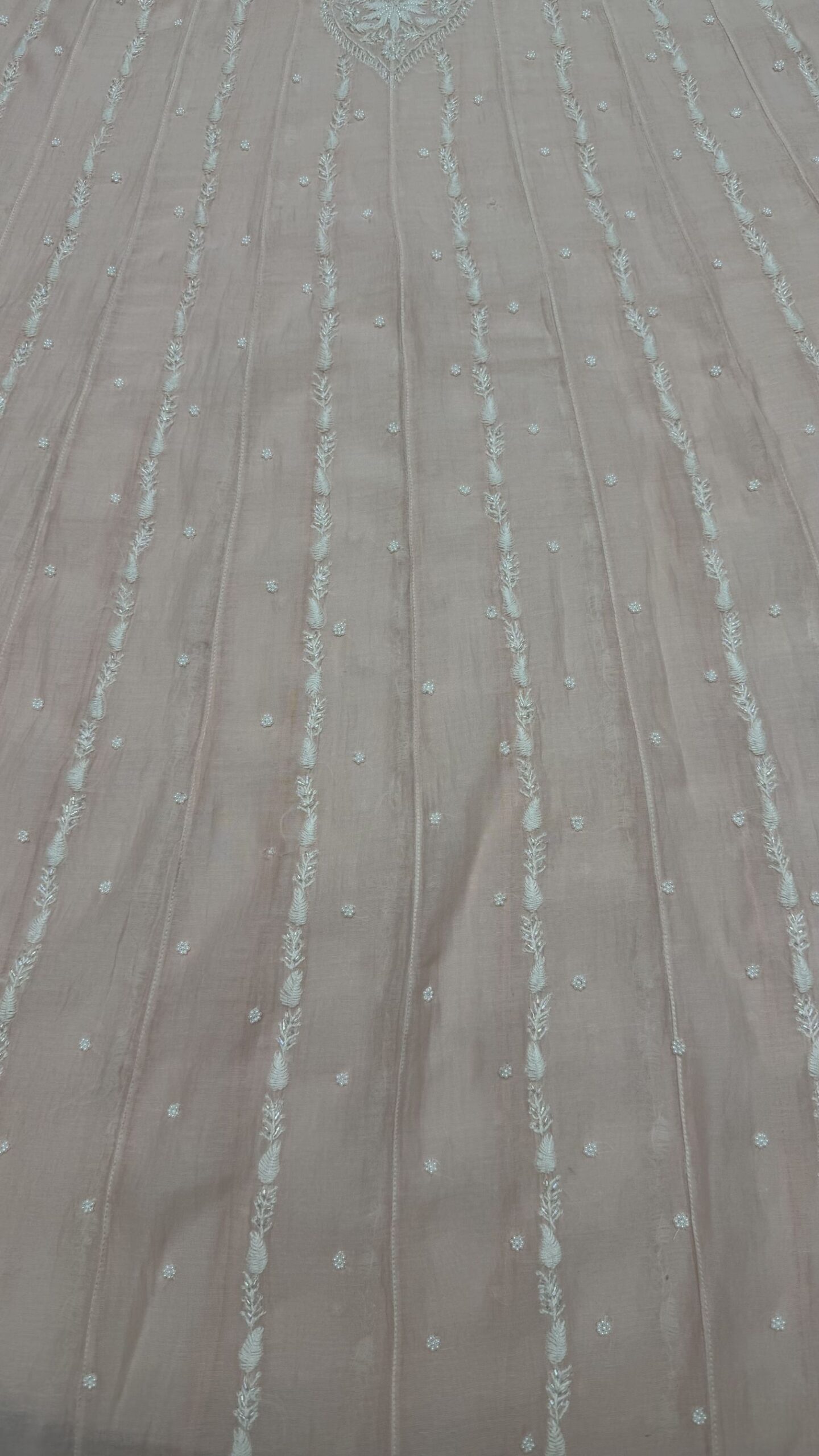 BLUSH PINK CHANDERI MUL CHIKANKARI ANARKALI & DUPATTA SET