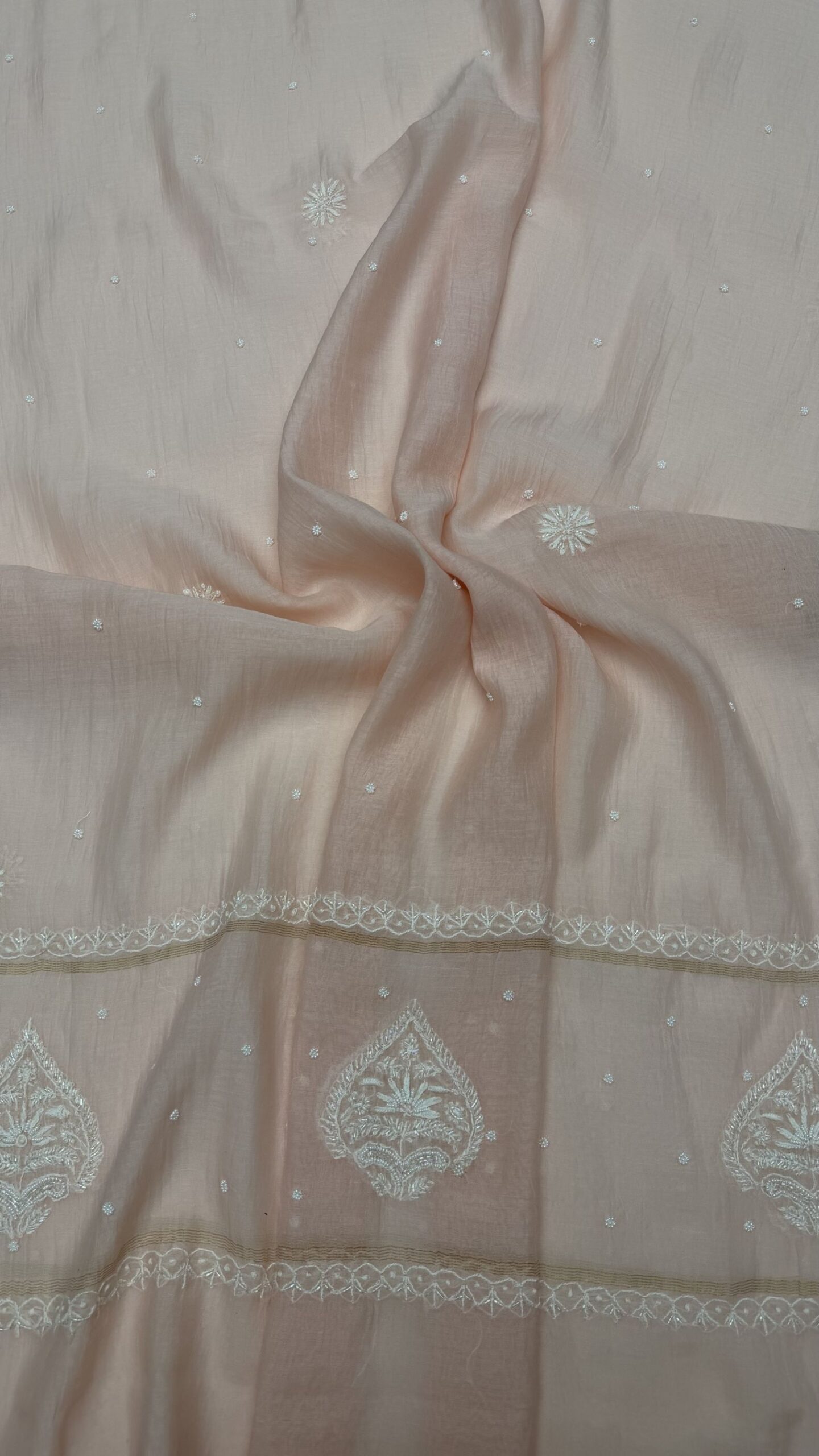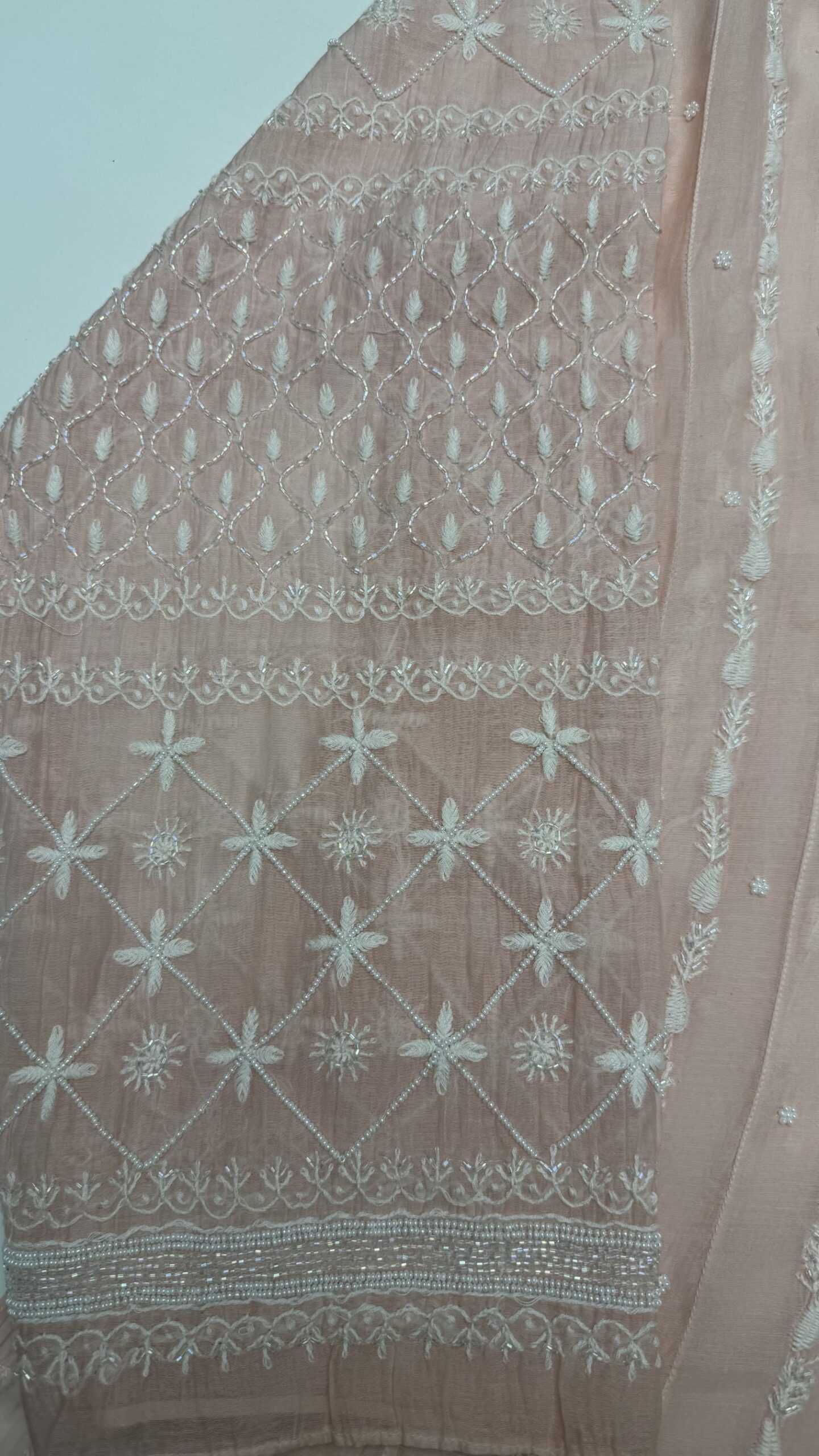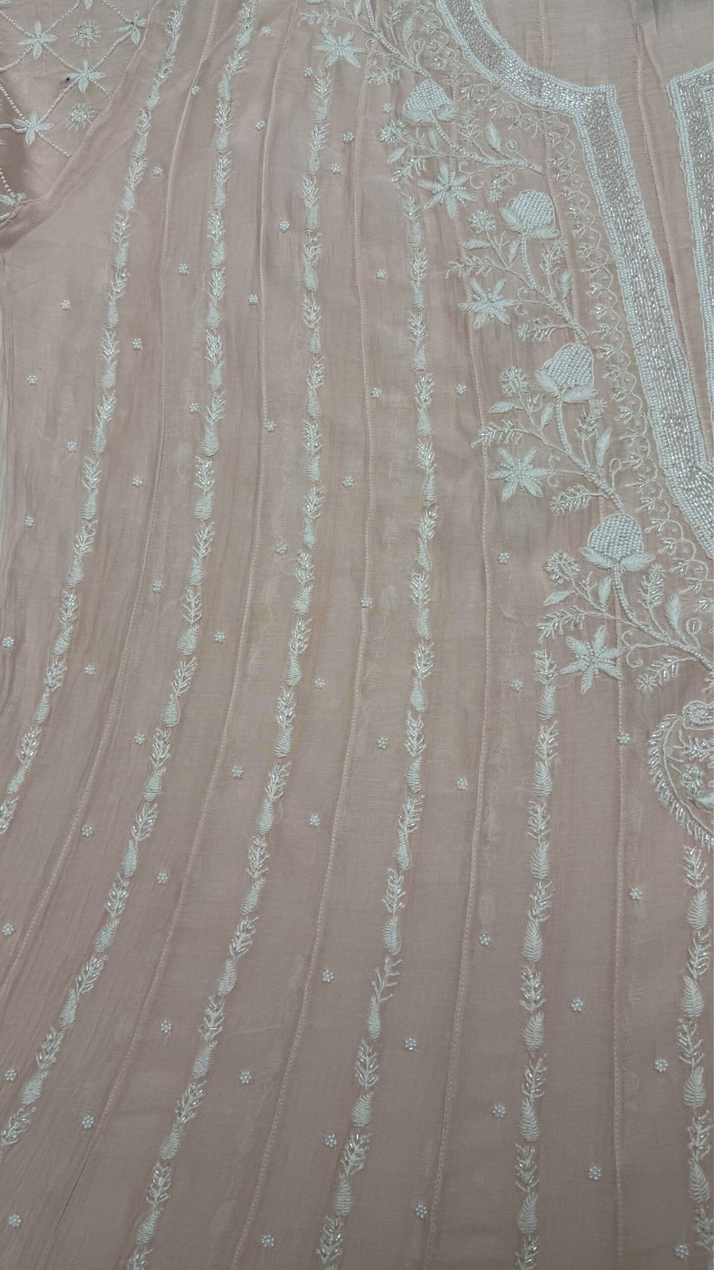 BLUSH PINK CHANDERI MUL CHIKANKARI ANARKALI & DUPATTA SET