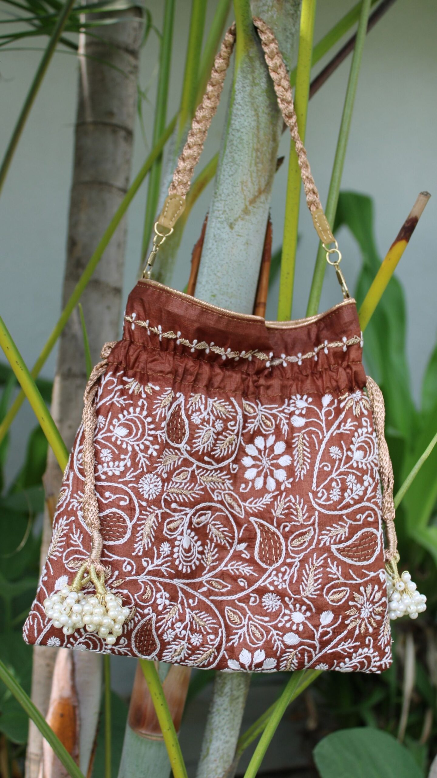 BROWN CHIKANKARI POTLI