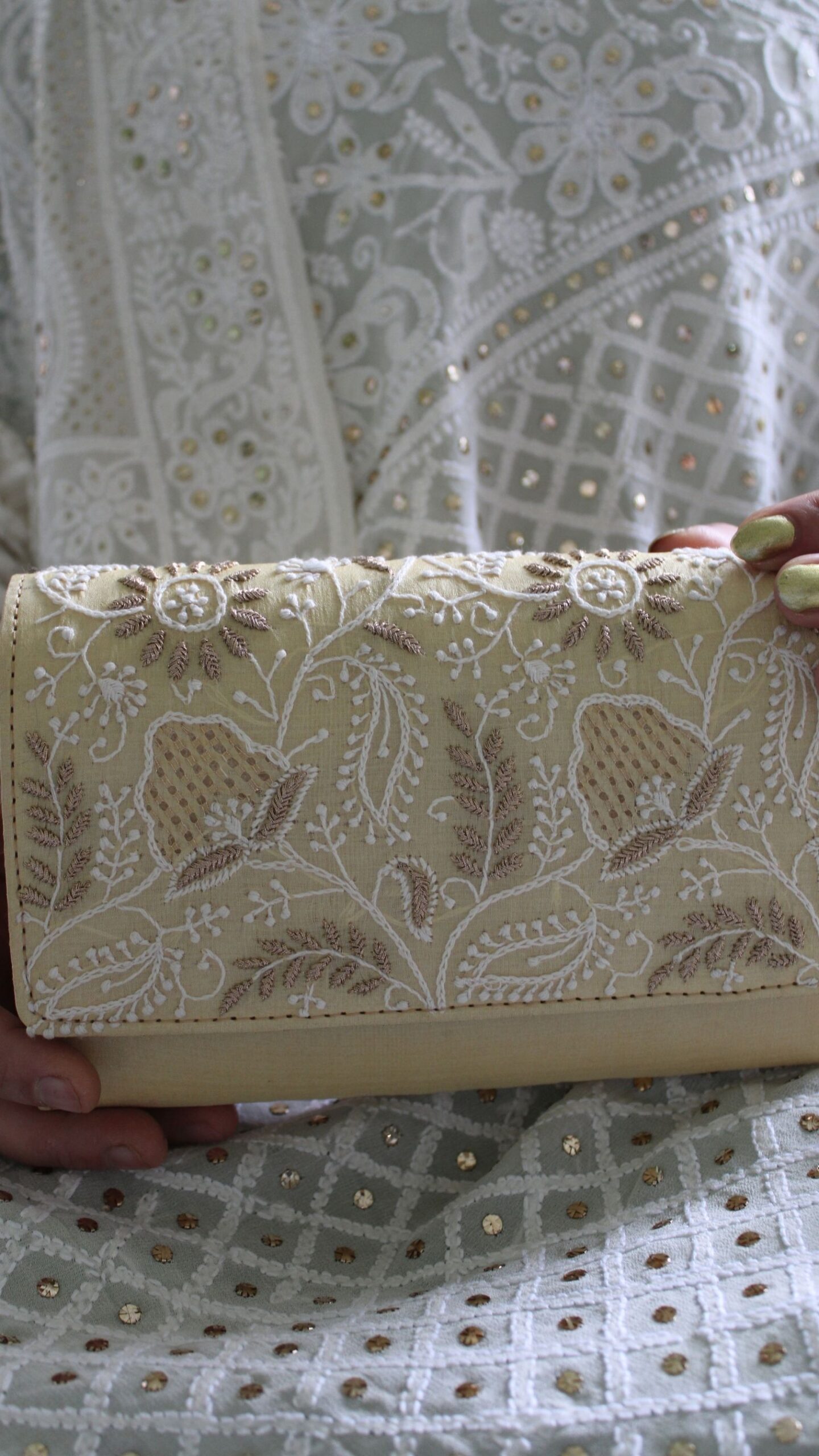 BUTTER YELLOW CHIKANKARI CLUTCH