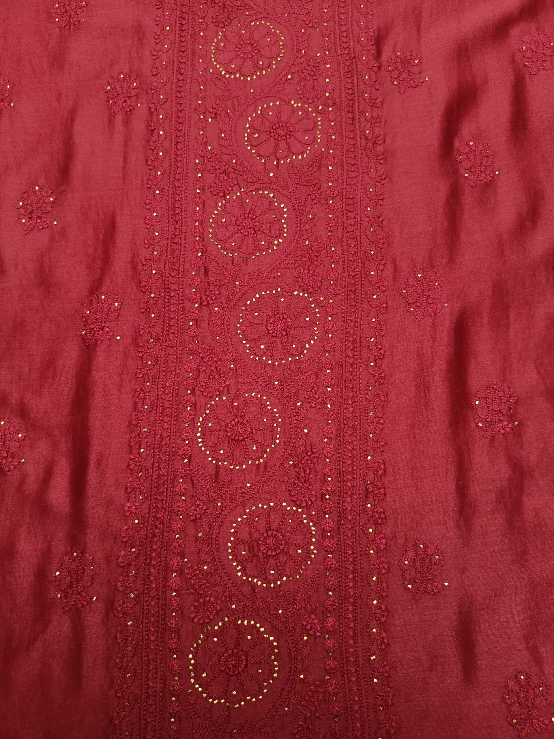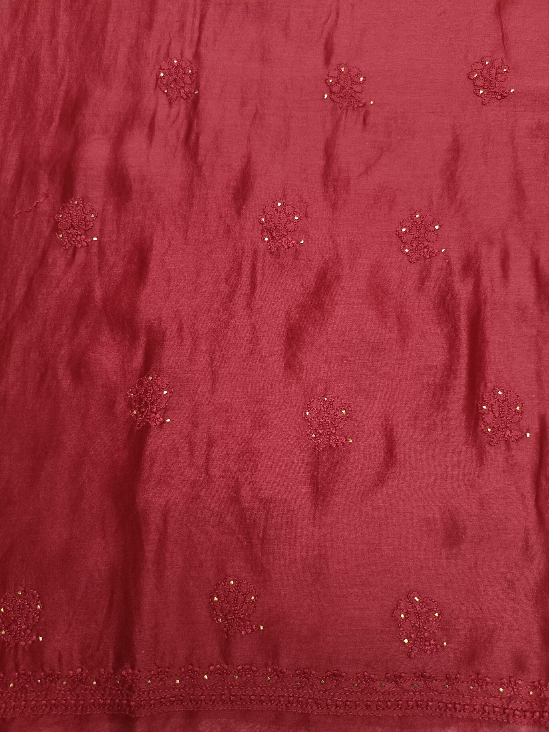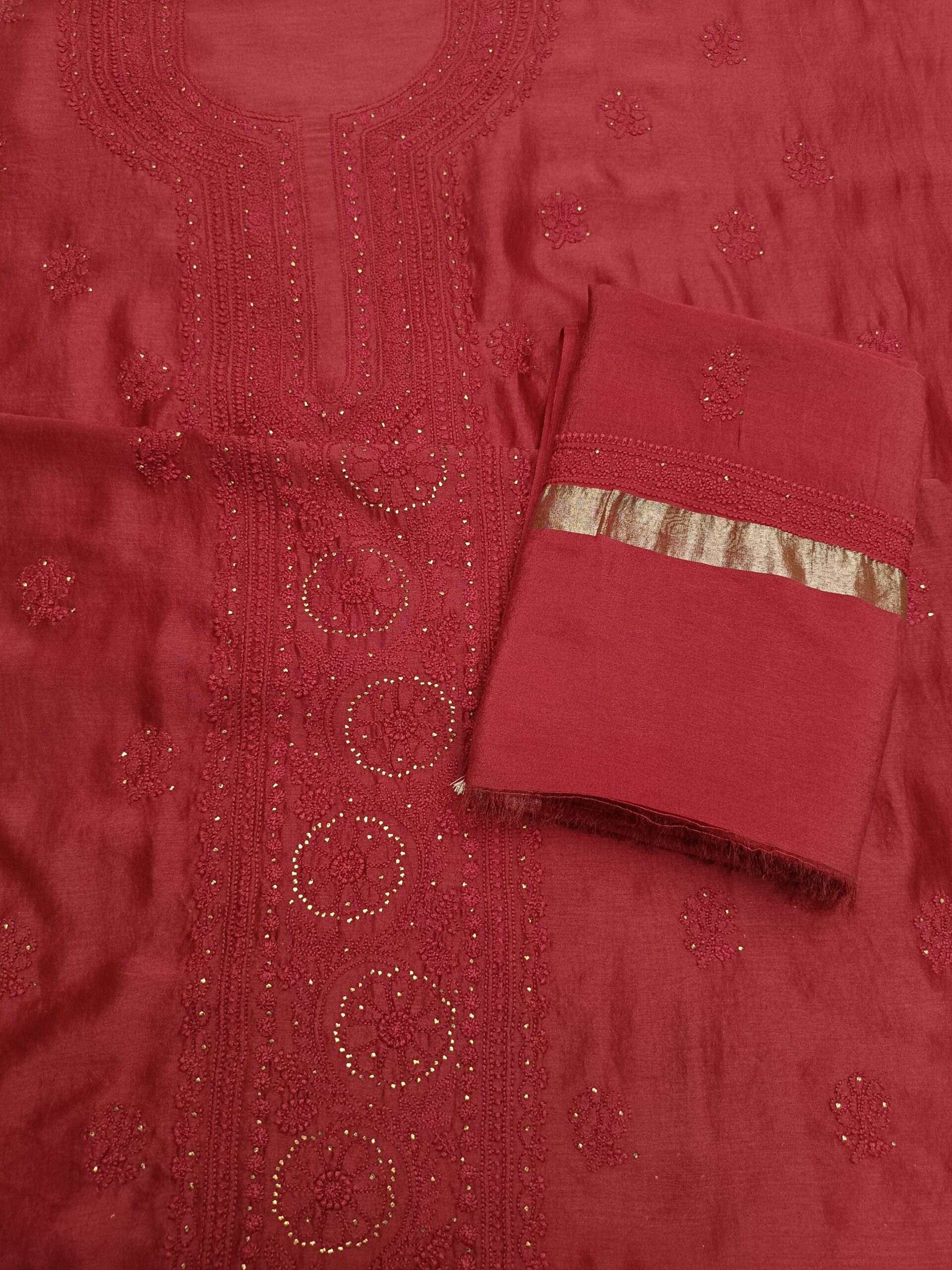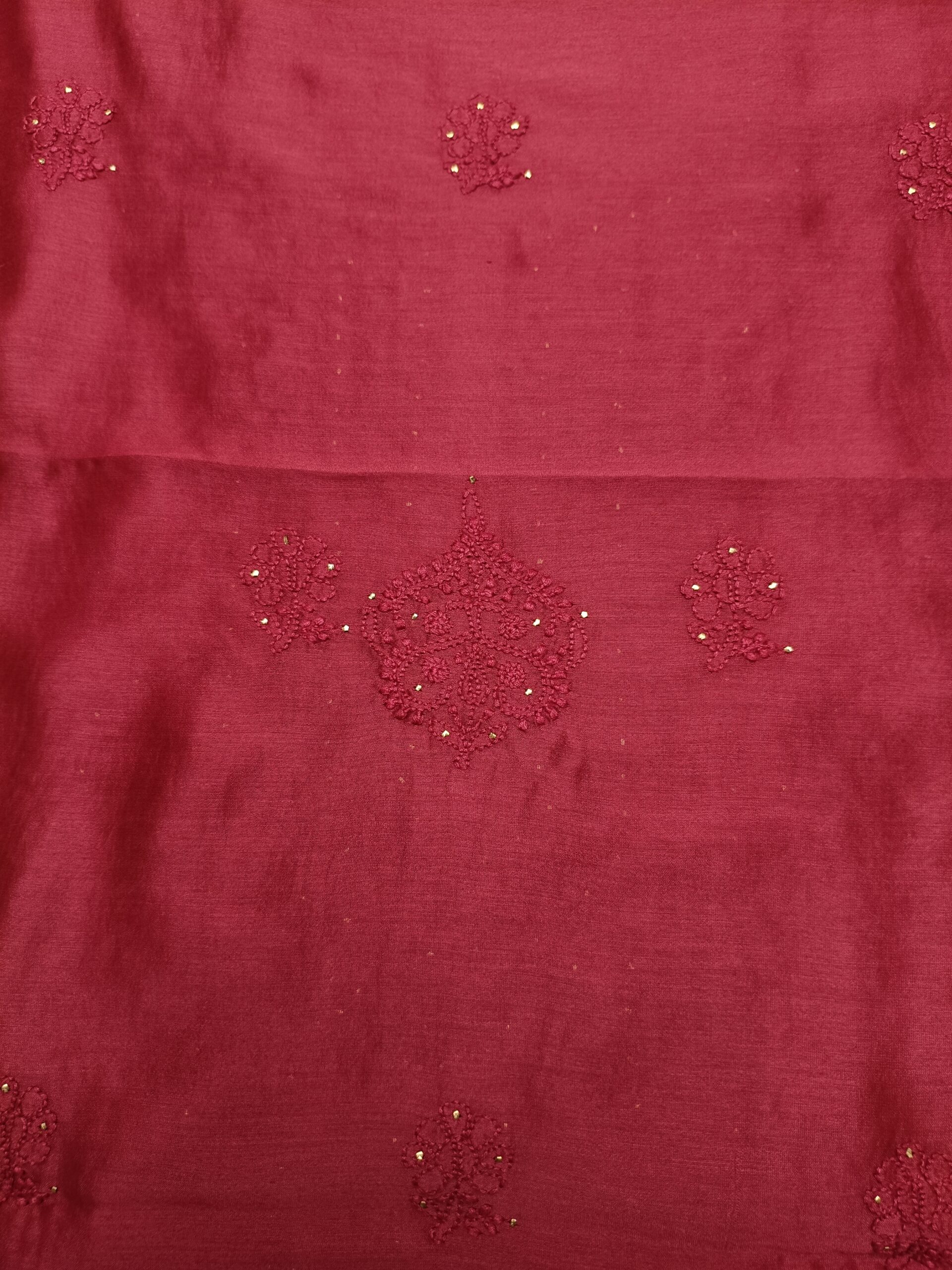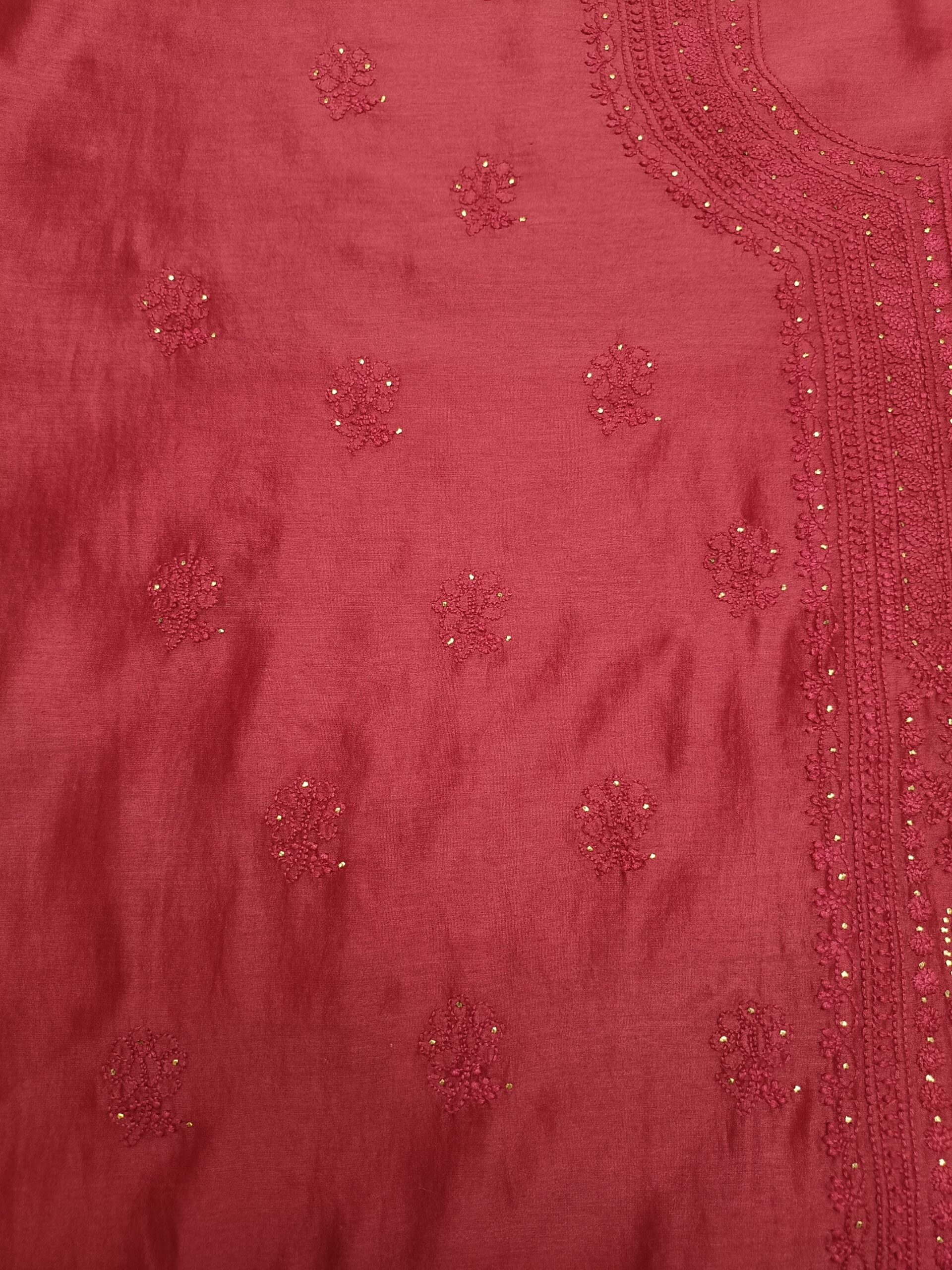 CARMINE RED CHANDERI SILK CHIKANKARI & MUKAISH KURTA & DUPATTA FABRIC