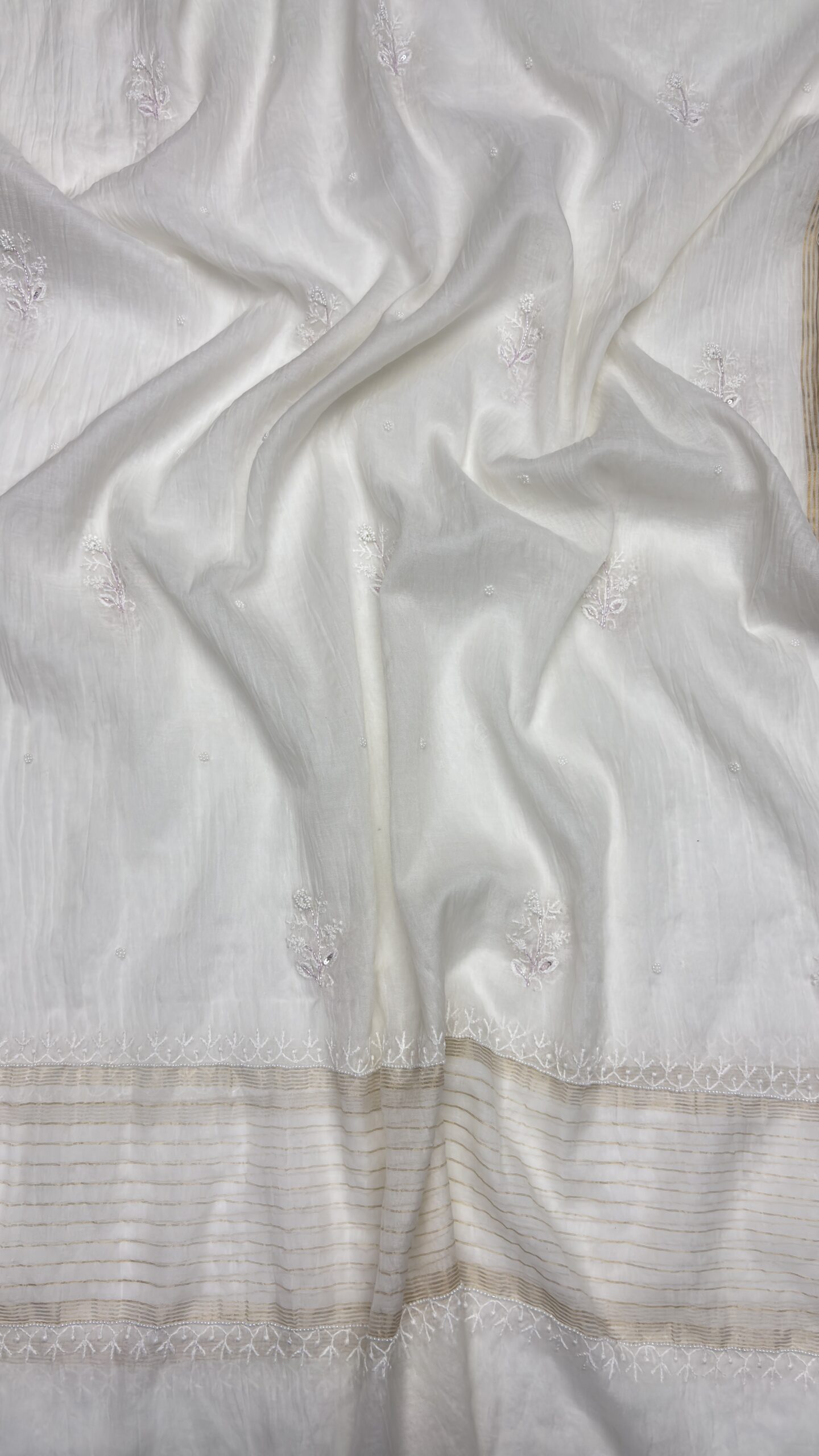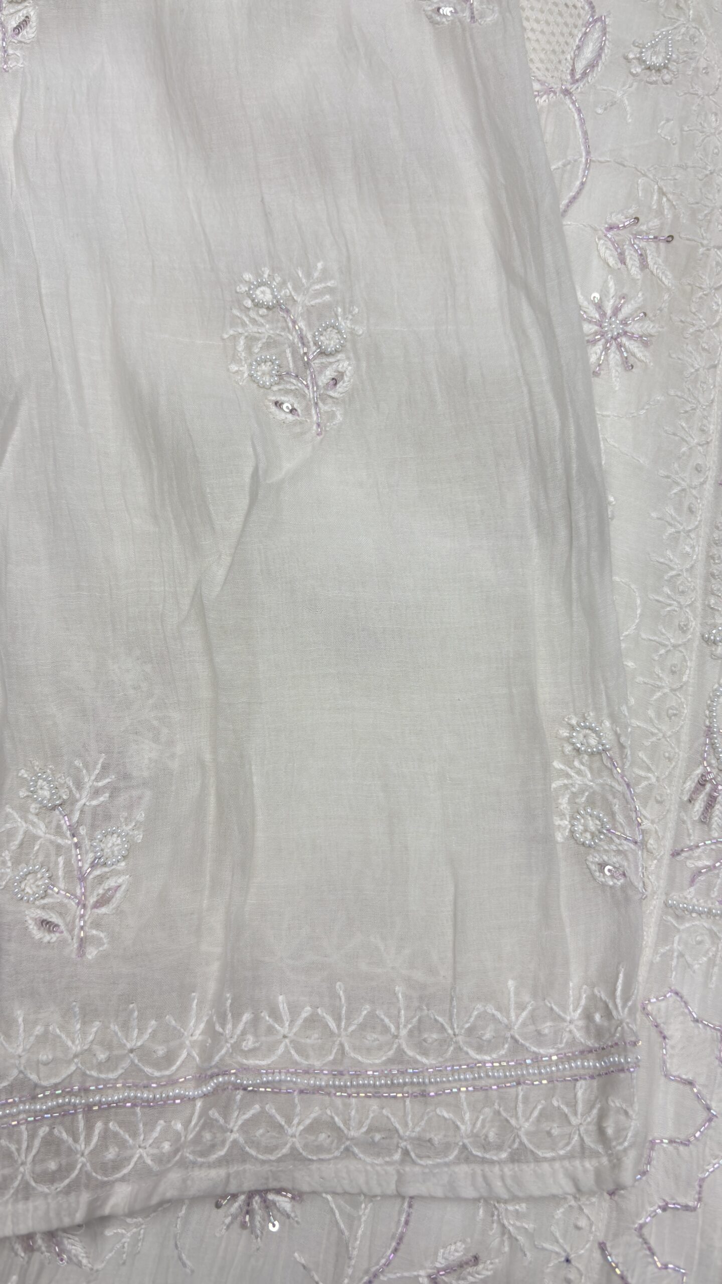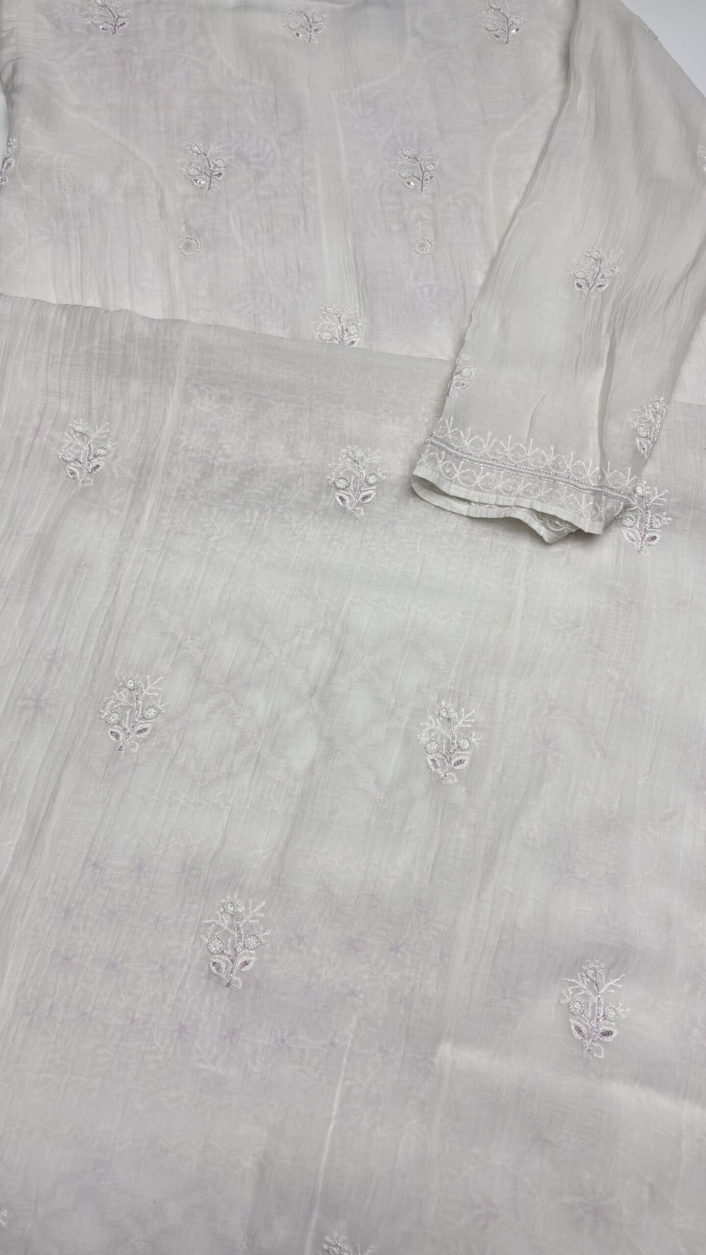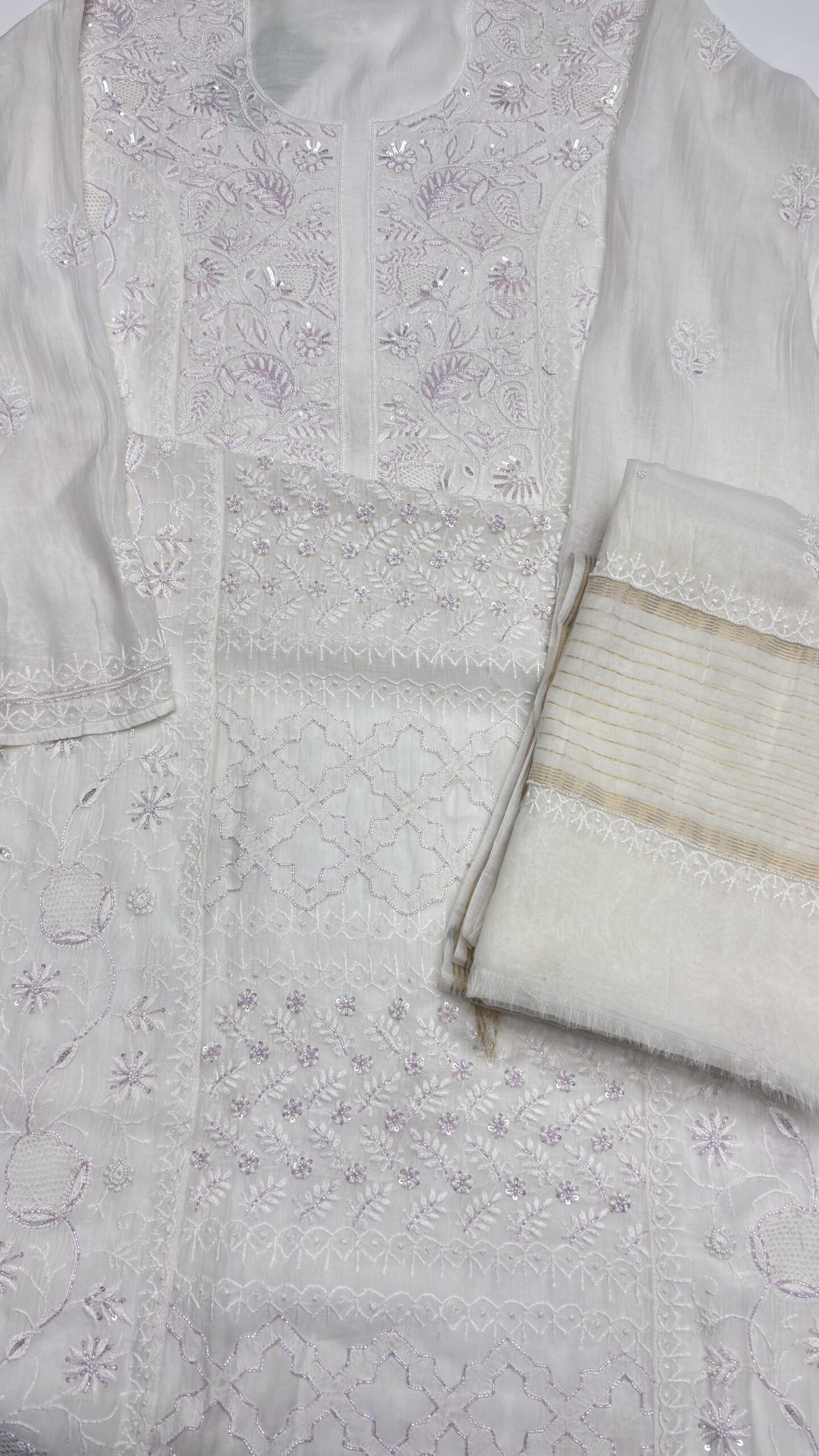 DYEABLE CHANDERI MUL CHIKANKARI KURTA & DUPATTA SET