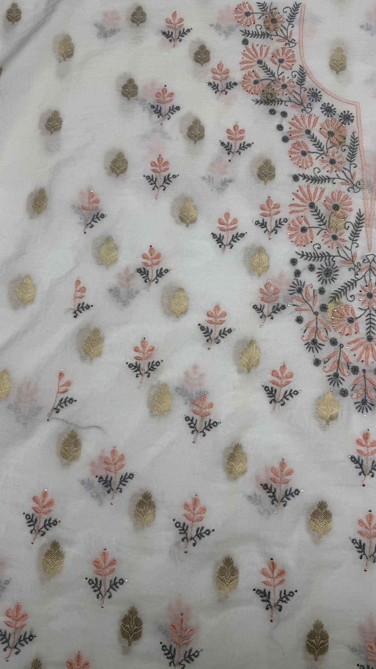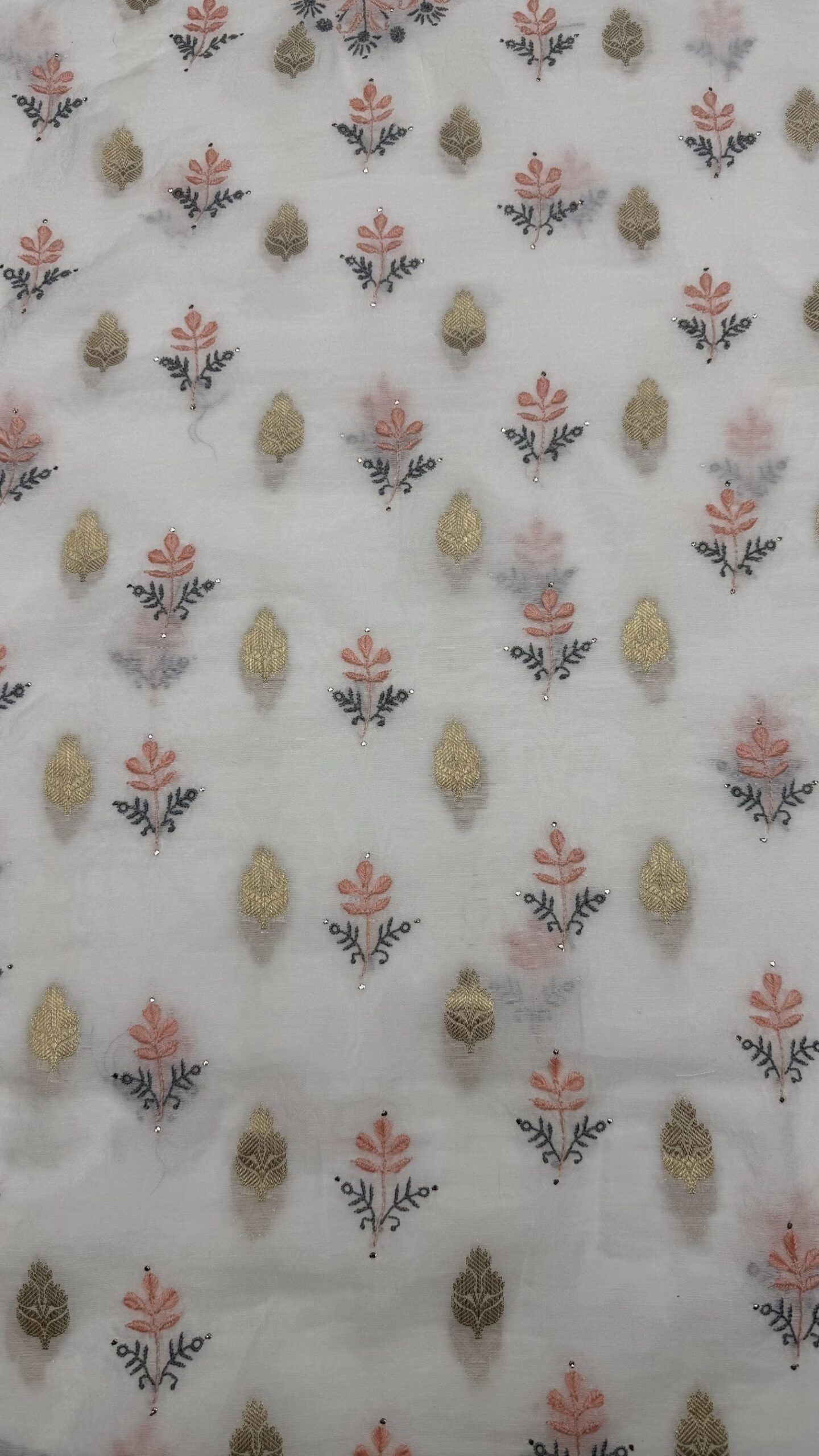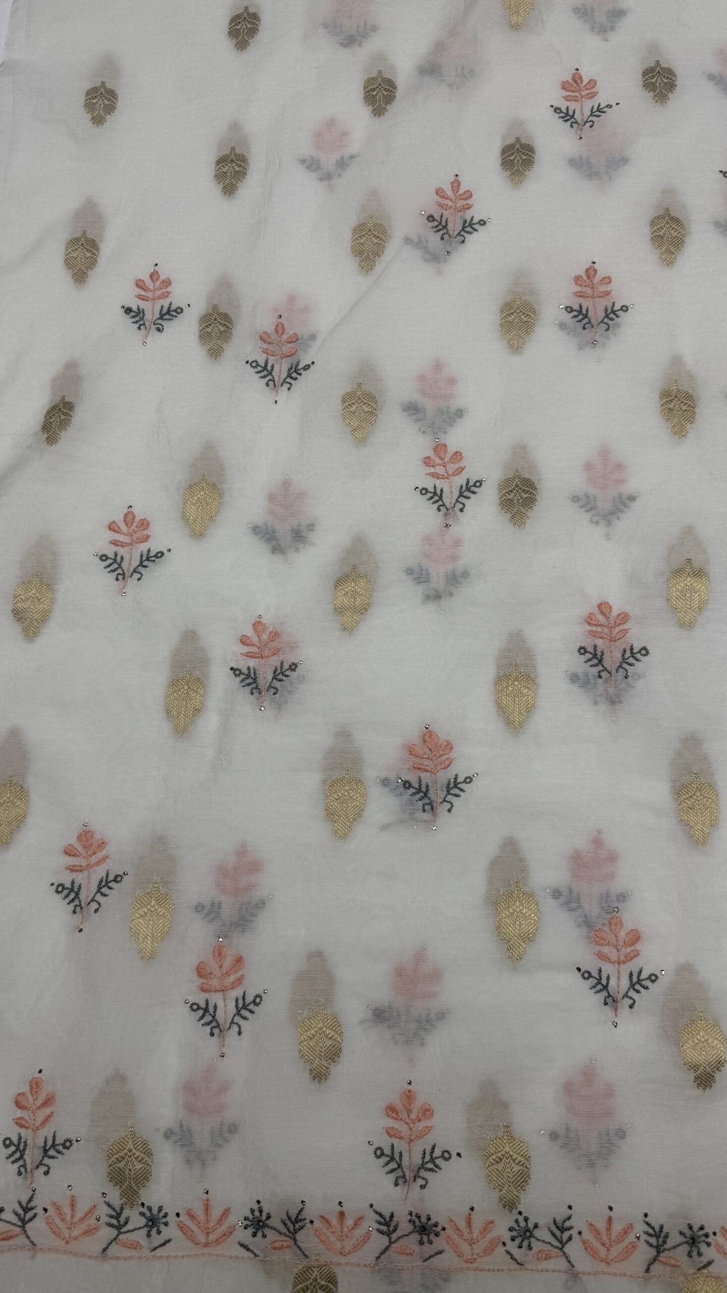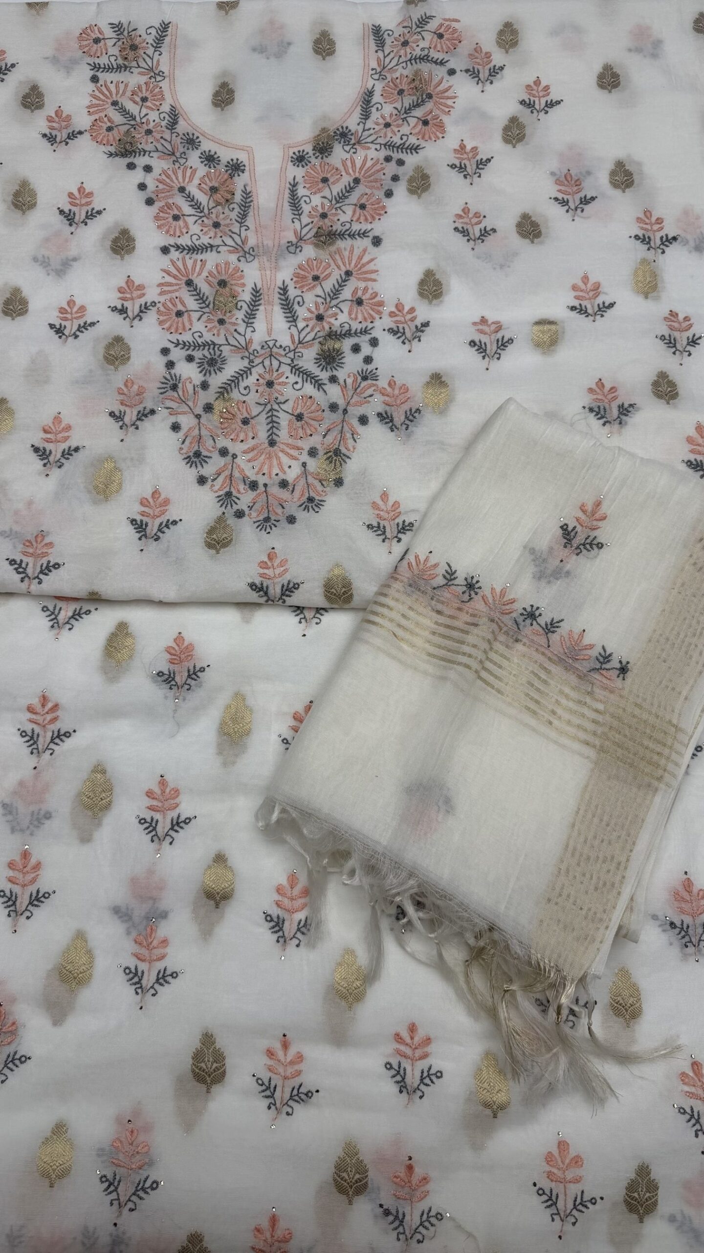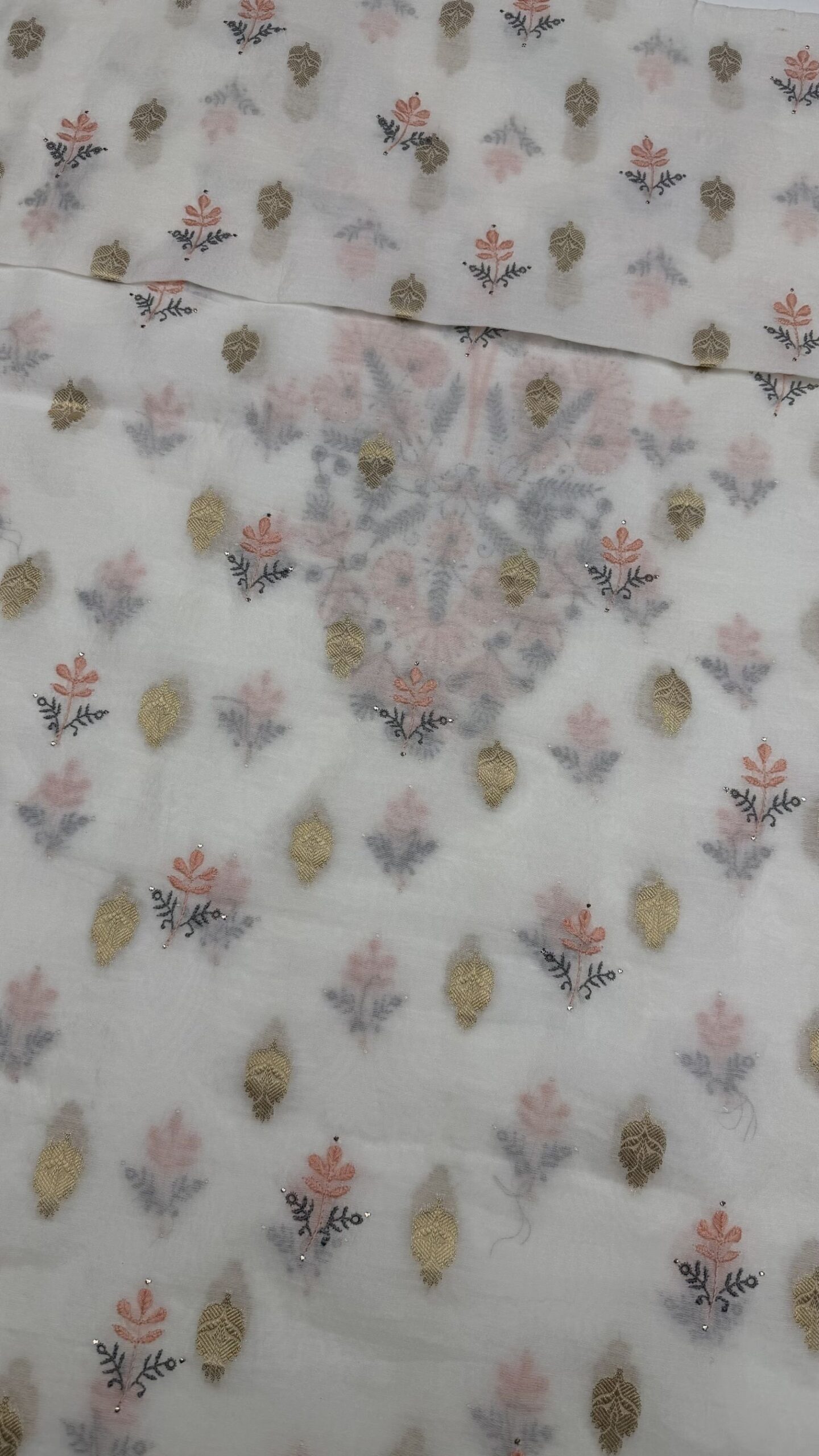 DYEABLE CHANDERI SILK CHIKANKARI & MUKAISH KURTA & DUPATTA SET