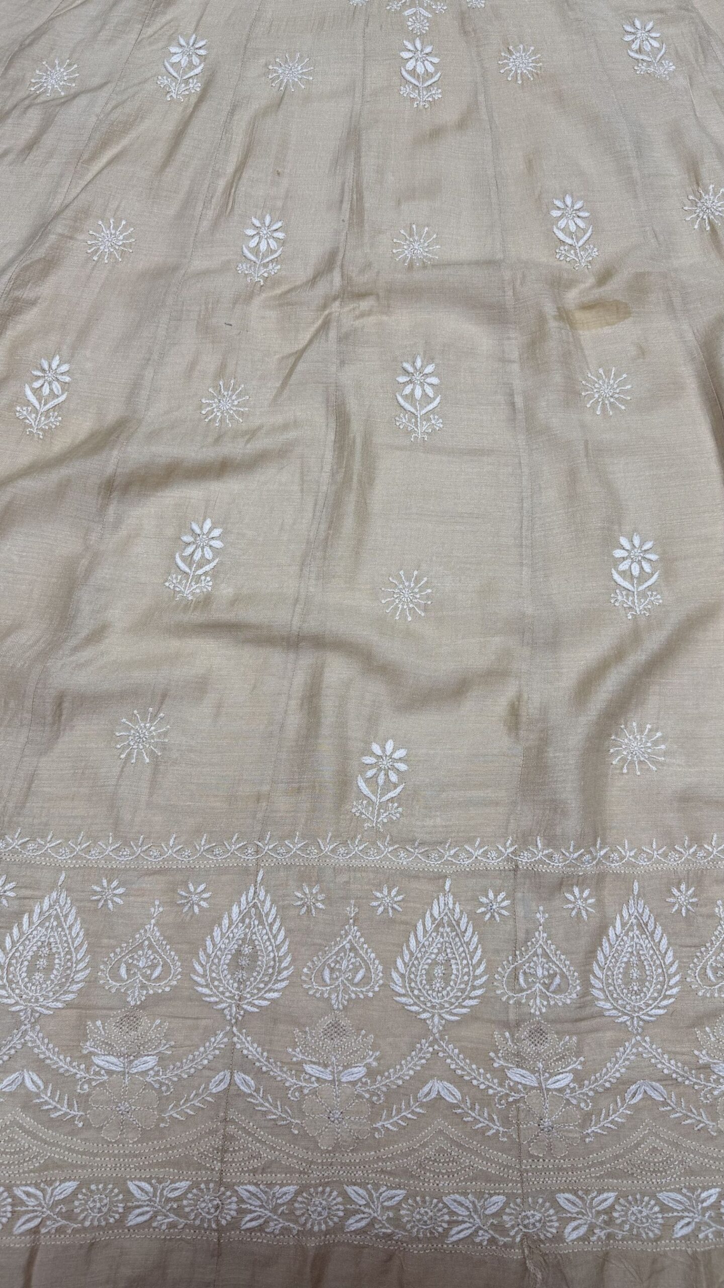 Step into elegance with this dyeable pure and premium Monga silk Chikankari Anarkali and dupatta set. Crafted from fine-quality Monga silk, it features a soft texture with a subtle, luxurious sheen. The Anarkali is beautifully adorned with intricate hand-embroidered Chikankari work, reflecting timeless craftsmanship. Its dyeable fabric allows you to personalize the color as per your style or occasion. Flowy and lightweight, it offers both comfort and a graceful silhouette. Perfect for festive celebrations, weddings, or special gatherings. A stunning blend of tradition, versatility, and refined charm.