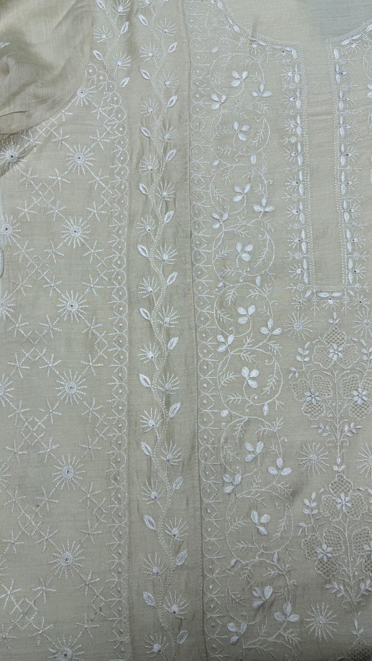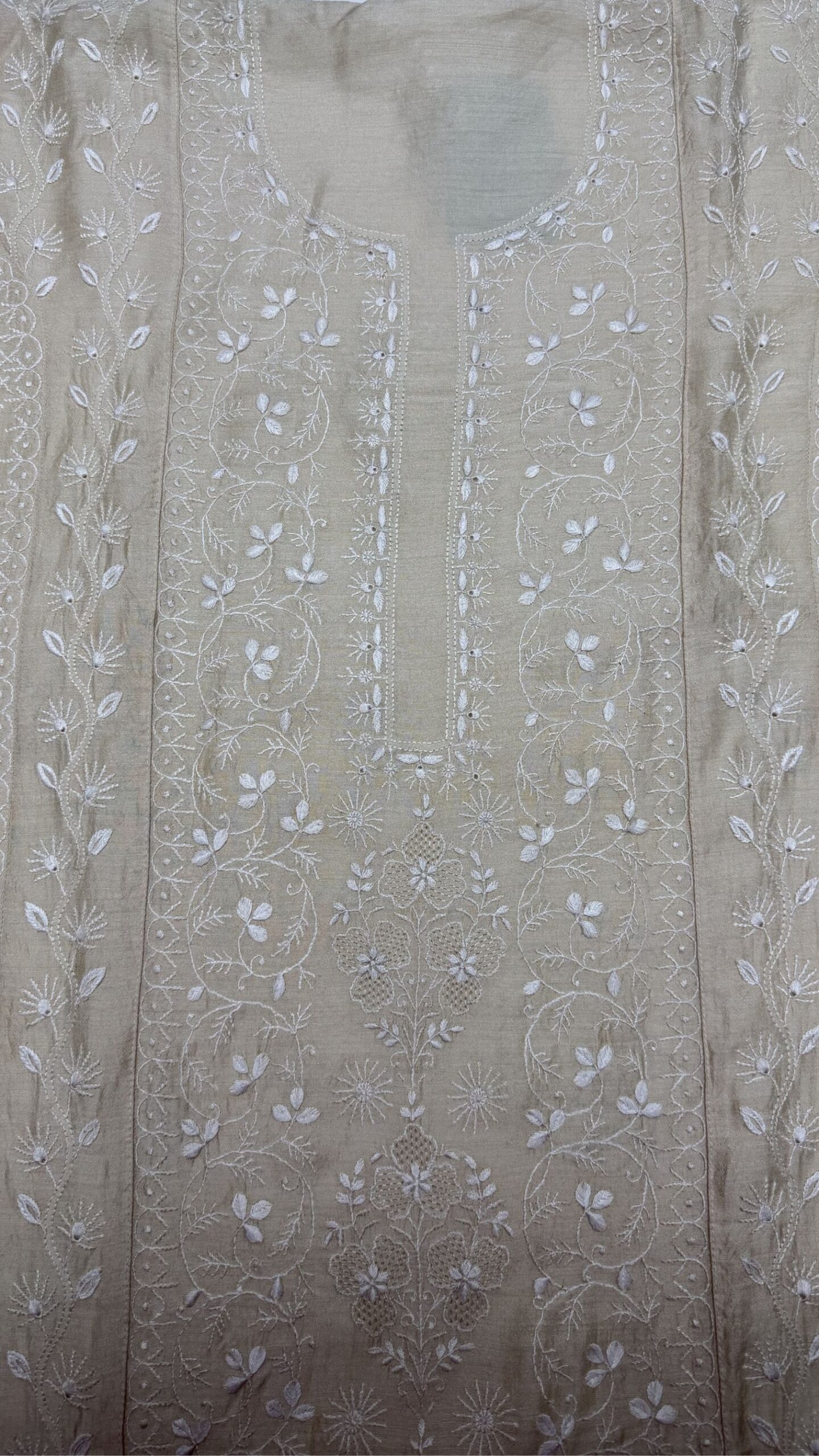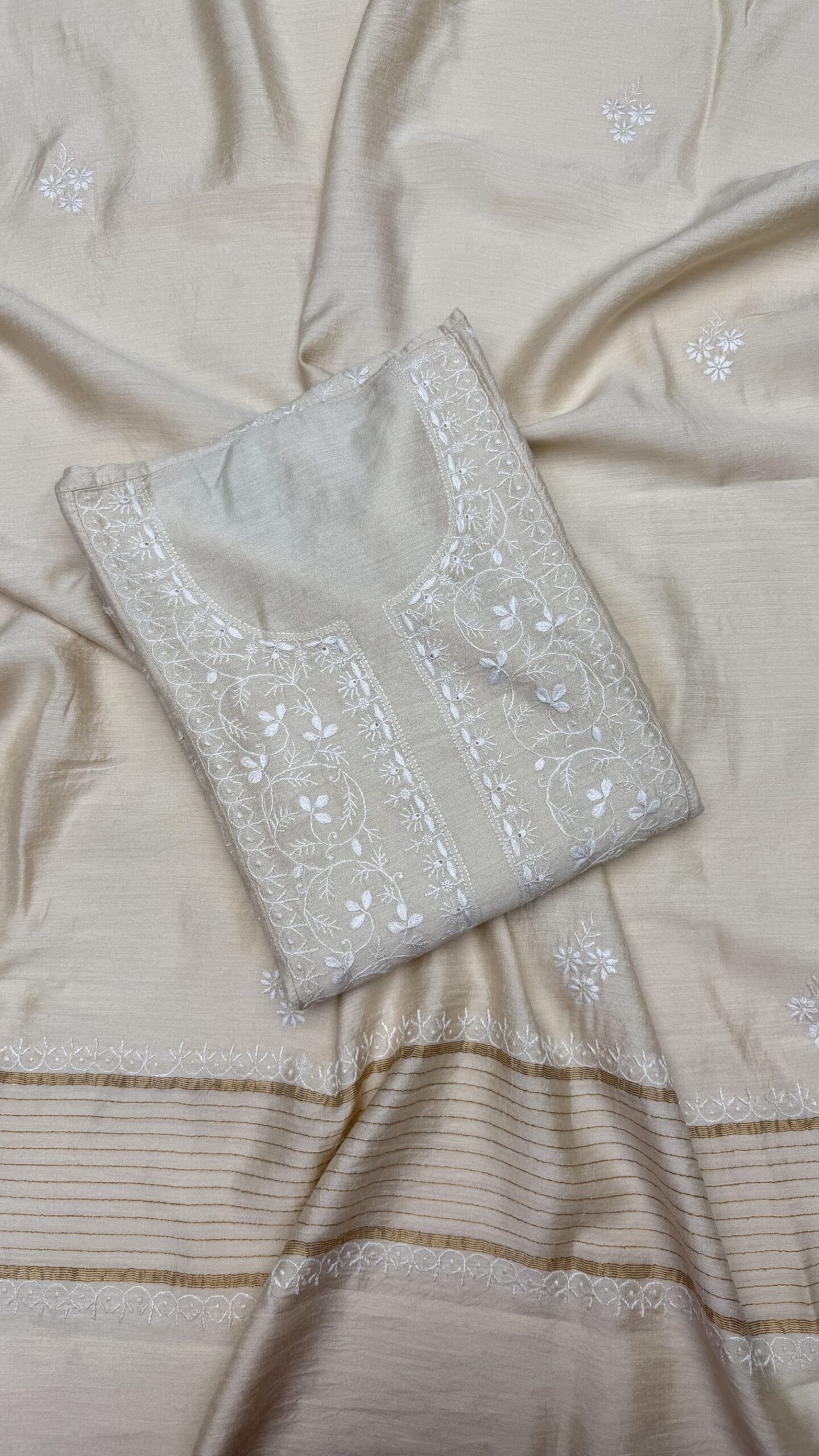 DYEABLE PURE & PREMIUM MONGA SILK CHIKANKARI KURTA & DUPATTA SET