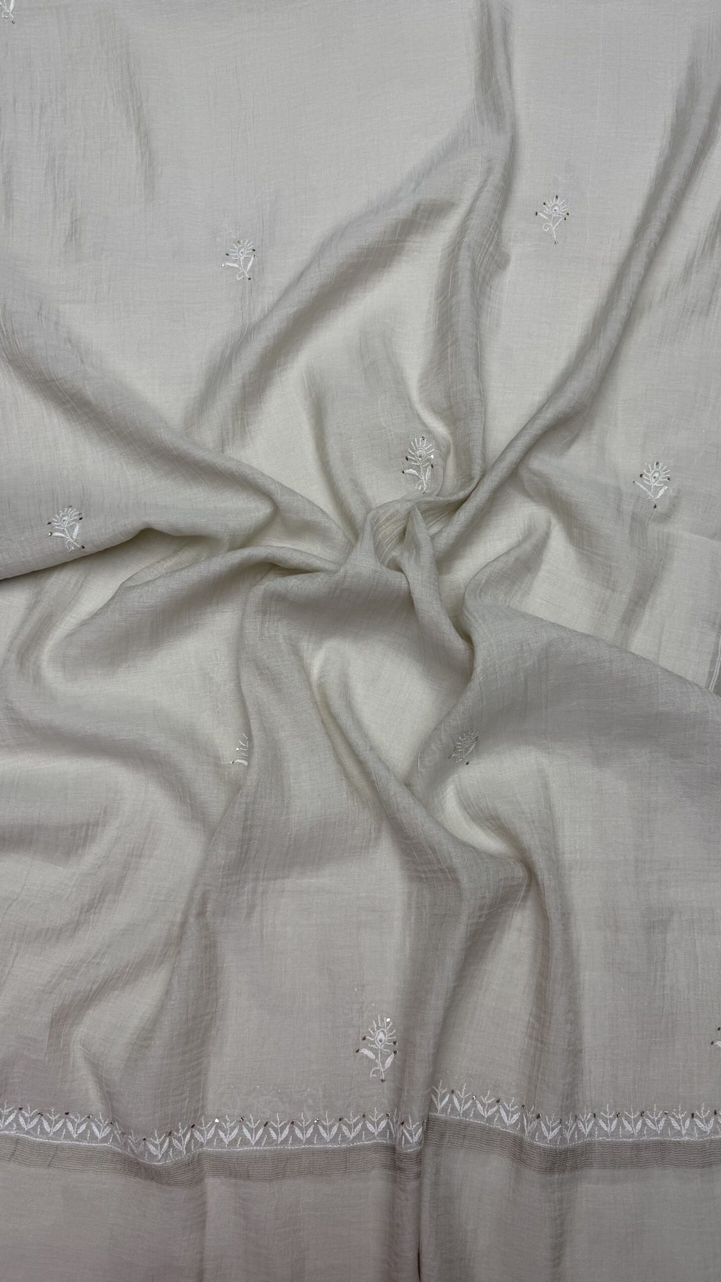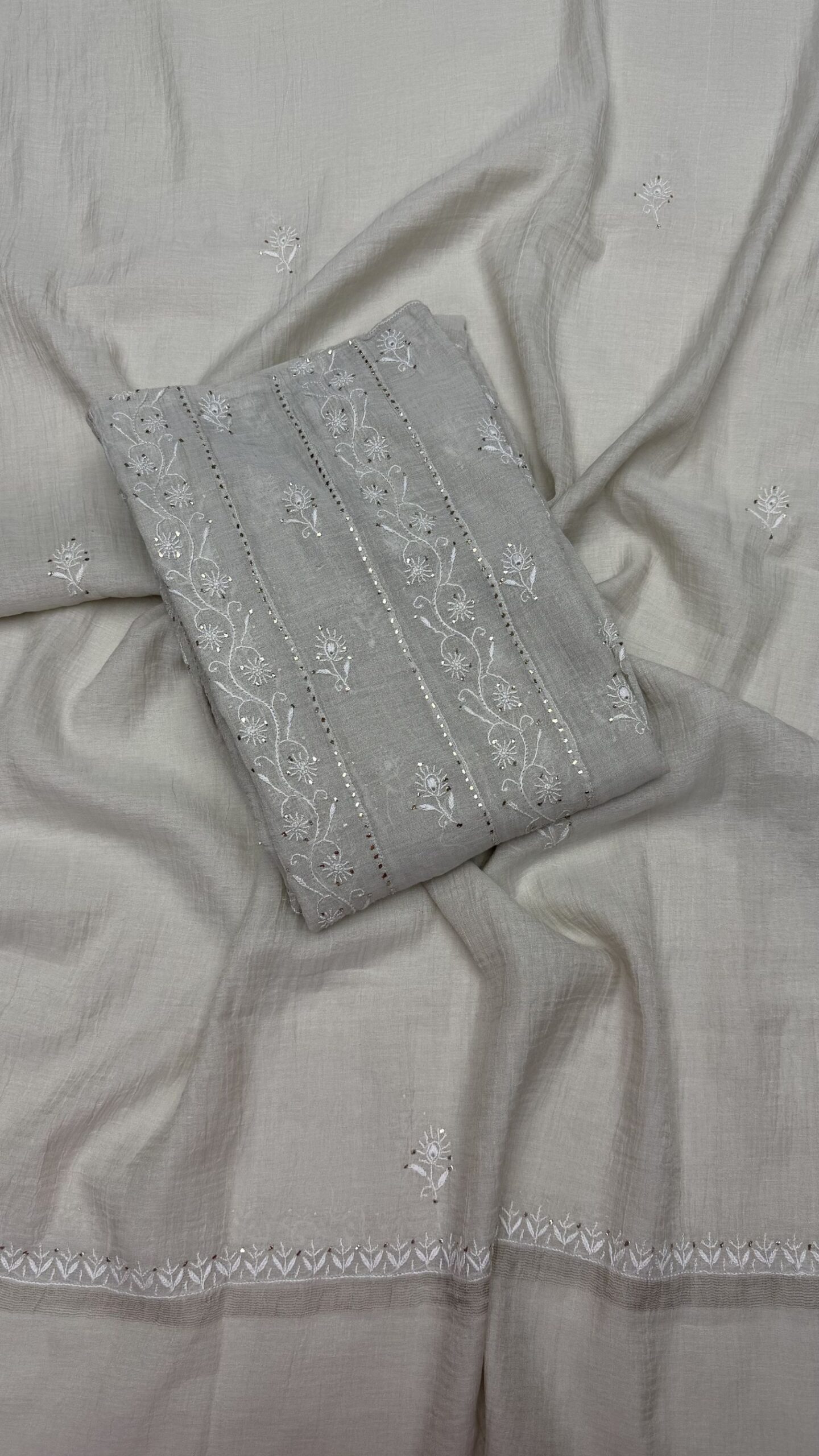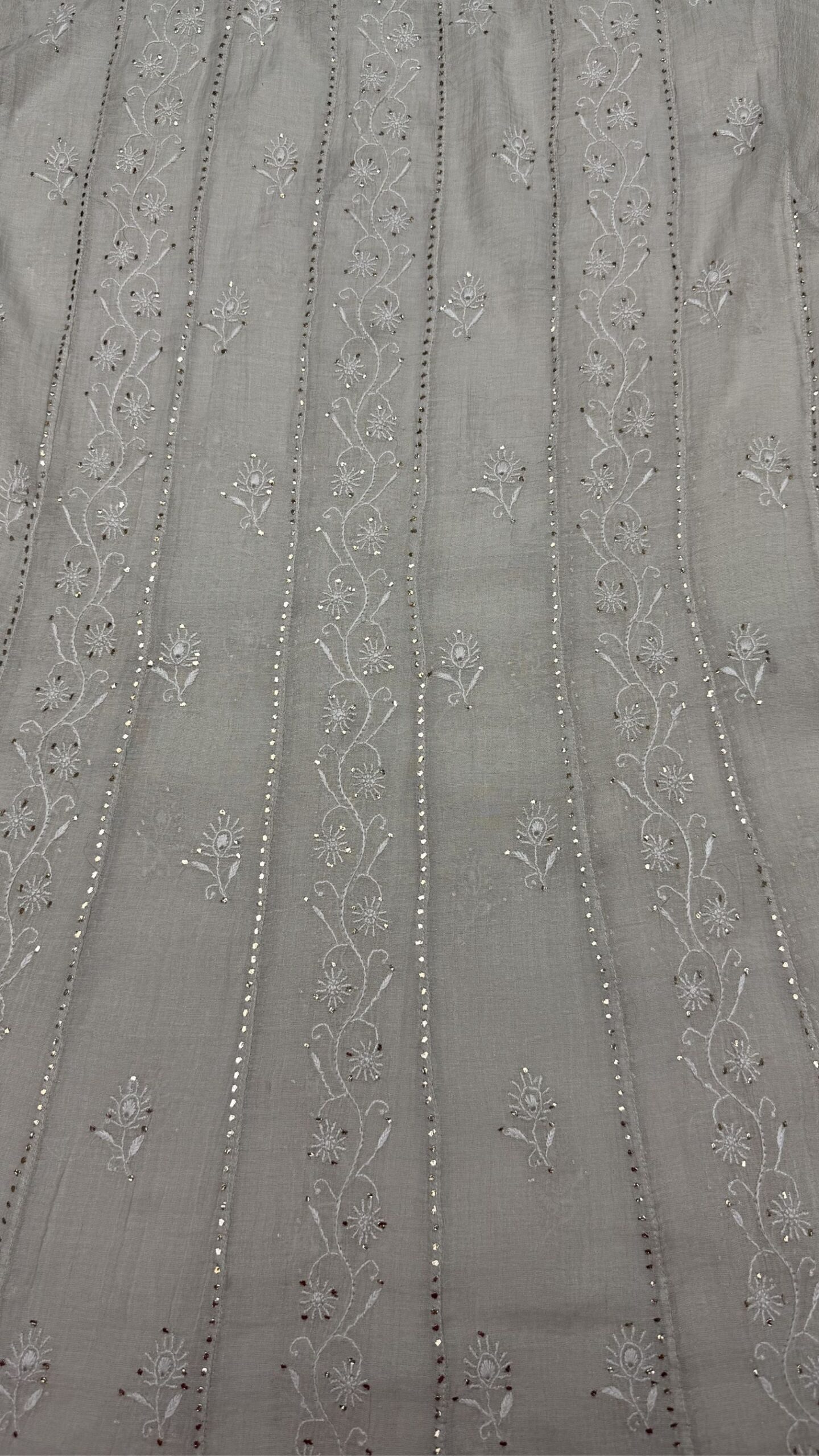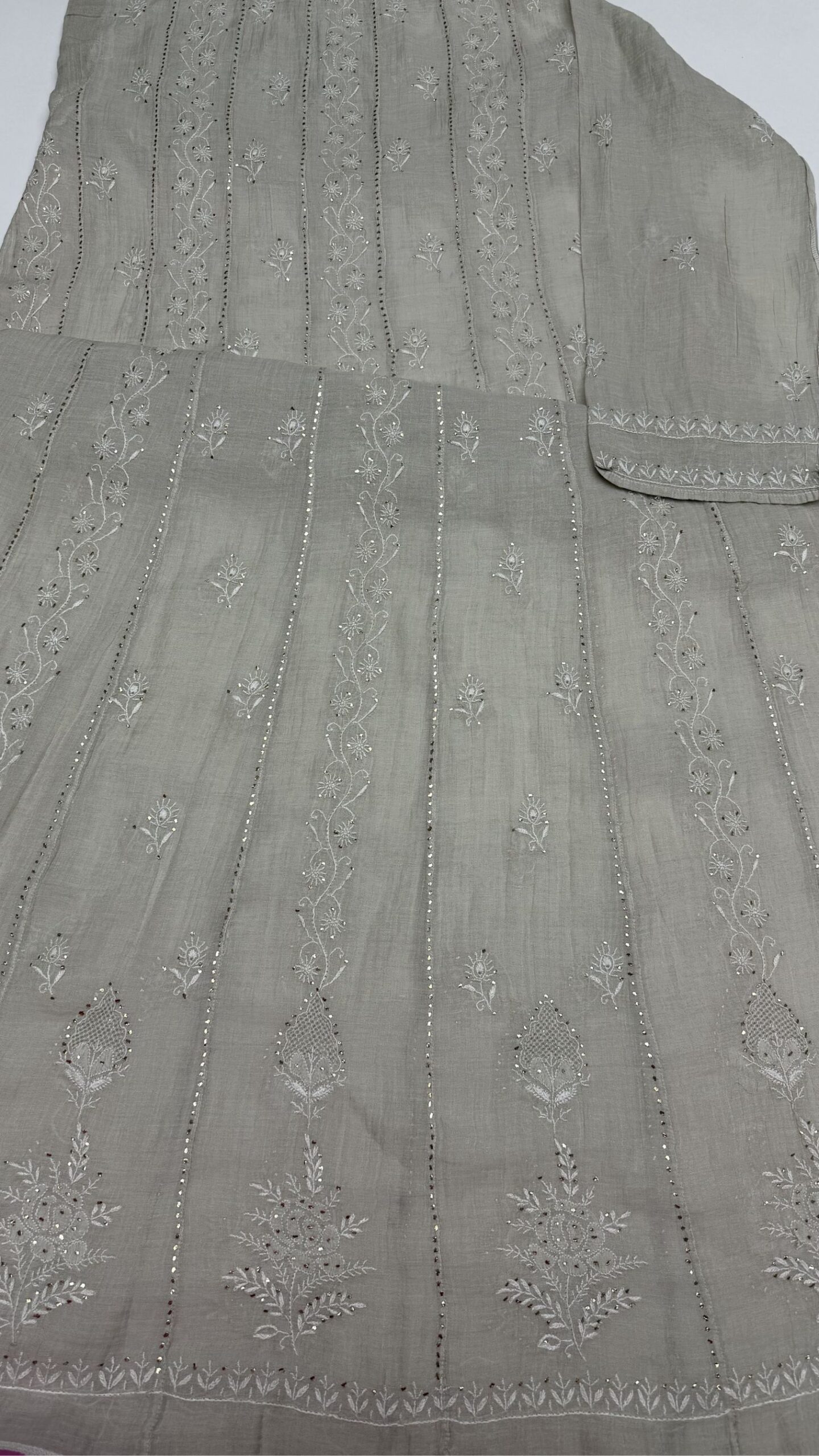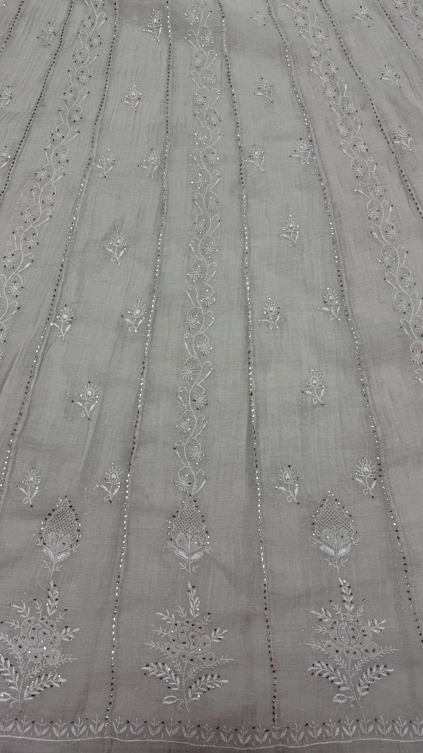 DYEABLE PURE & PREMIUM SILVER TISSUE CHIKANKARI & MUKAISH ANARKALI & DUPATTA SET