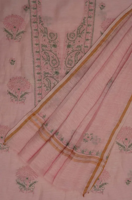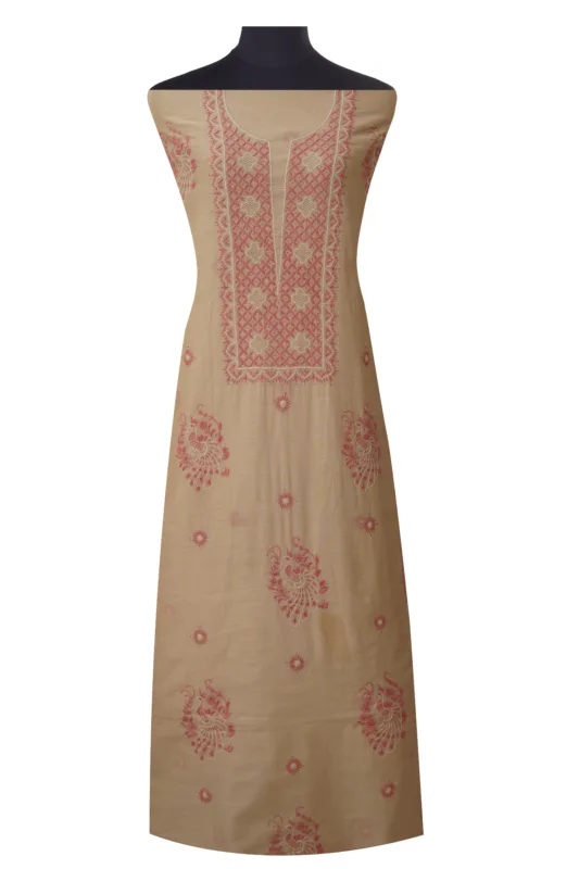 Srajann Hand Embroidered Fawn Tissue Lucknowi Chikankari Unstitched Kurta Dupatta Set (SLC1474)