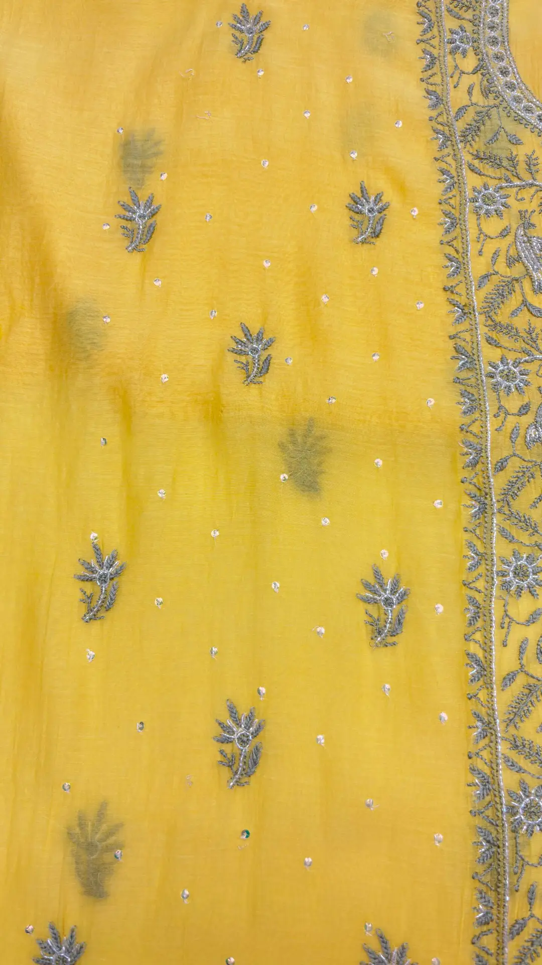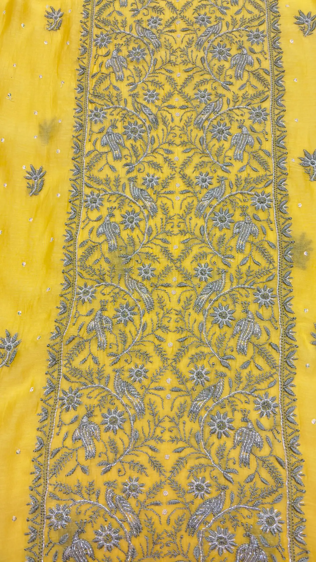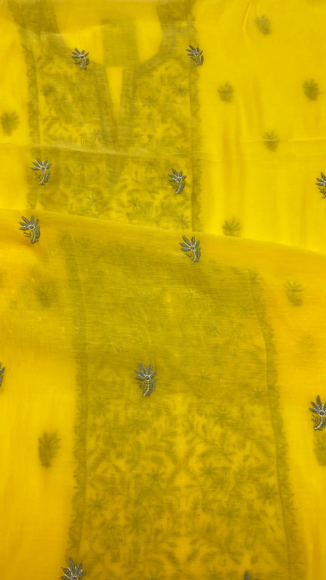Radiating timeless elegance, this golden yellow Chanderi mul chikankari kurta & dupatta fabric is a celebration of refined craftsmanship.