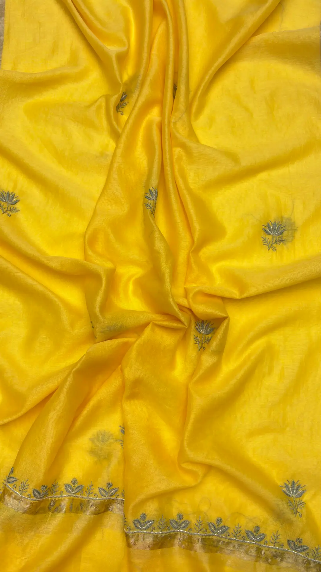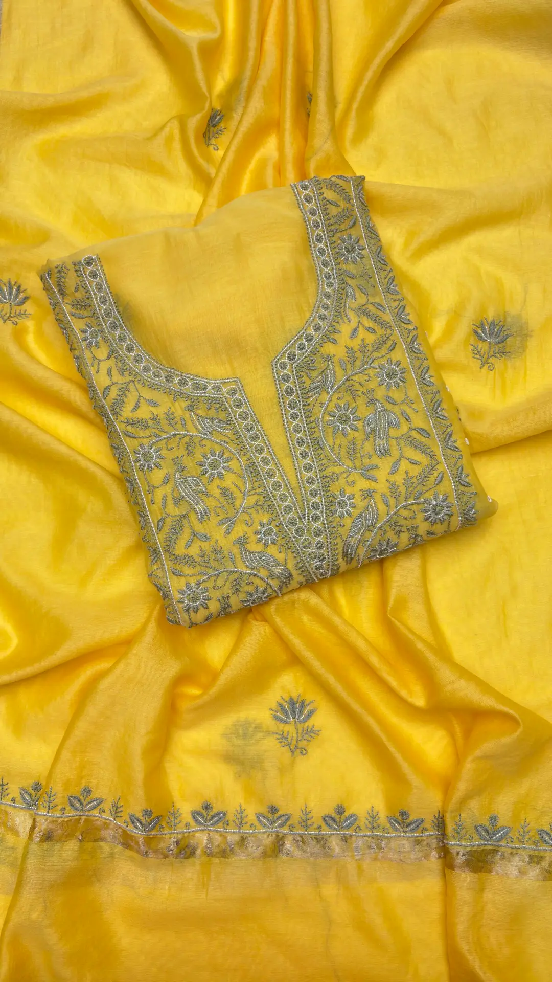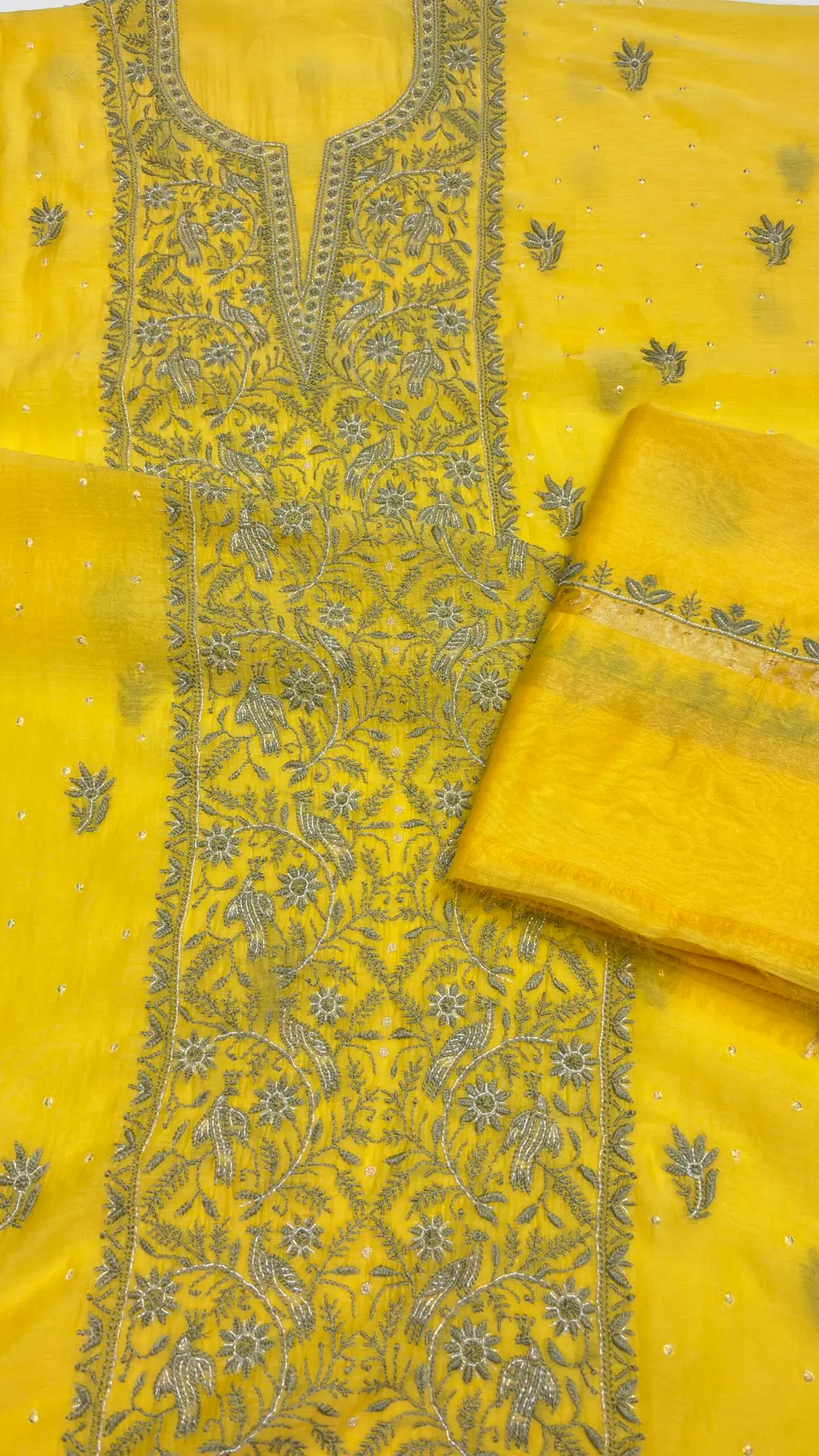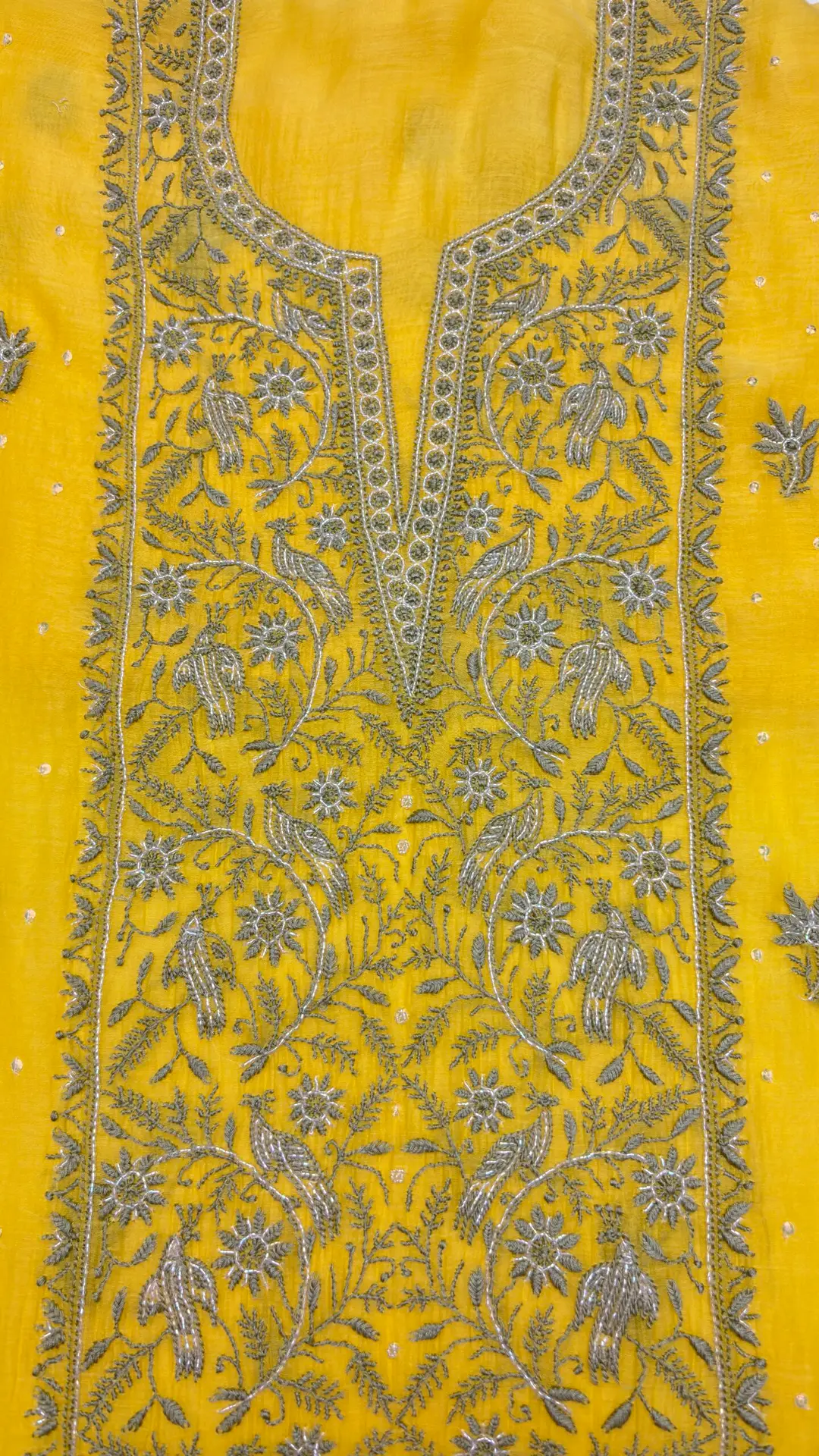 Radiating timeless elegance, this golden yellow Chanderi mul chikankari kurta & dupatta fabric is a celebration of refined craftsmanship.