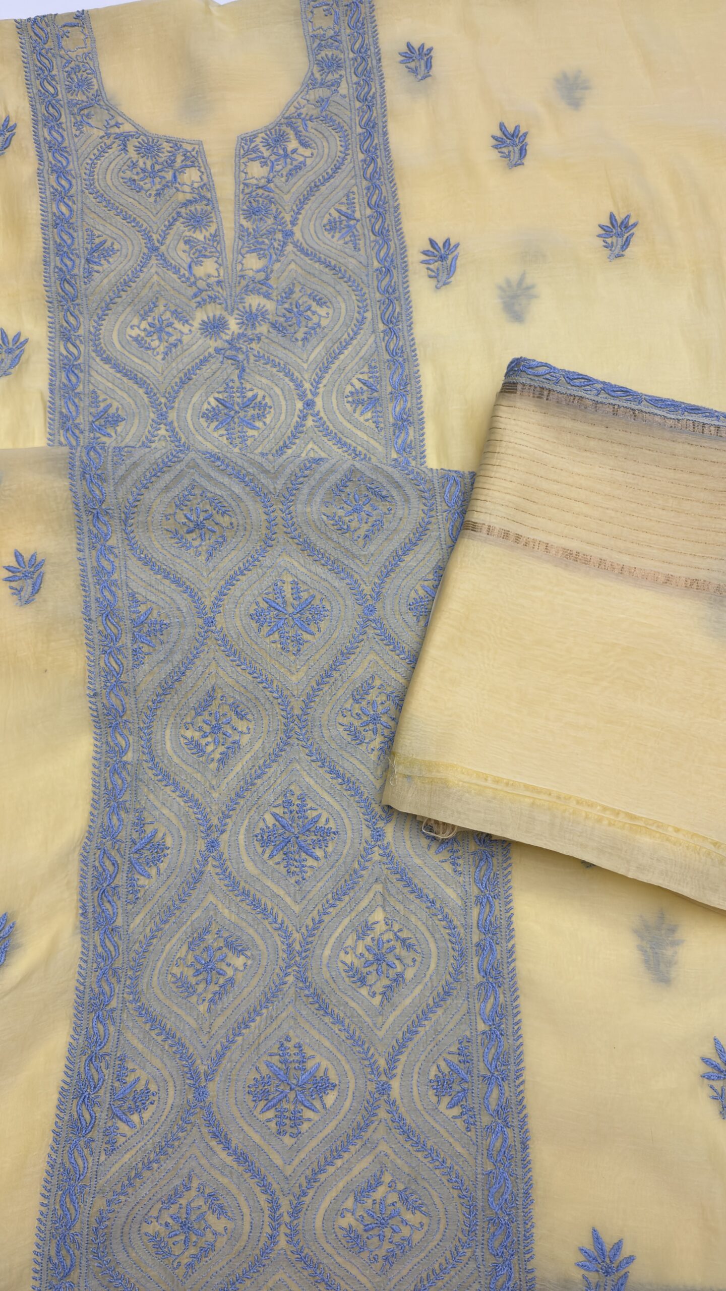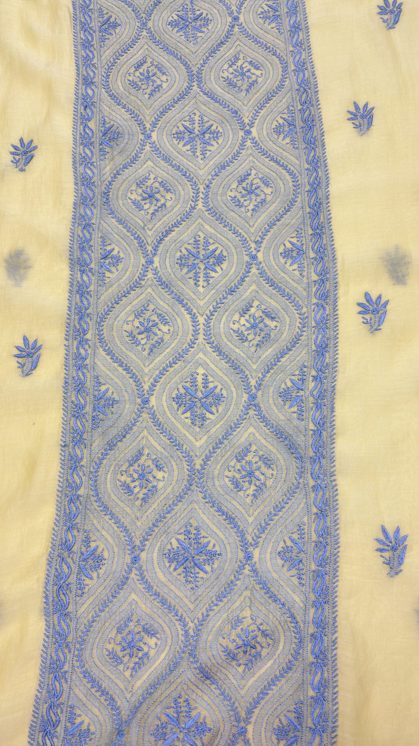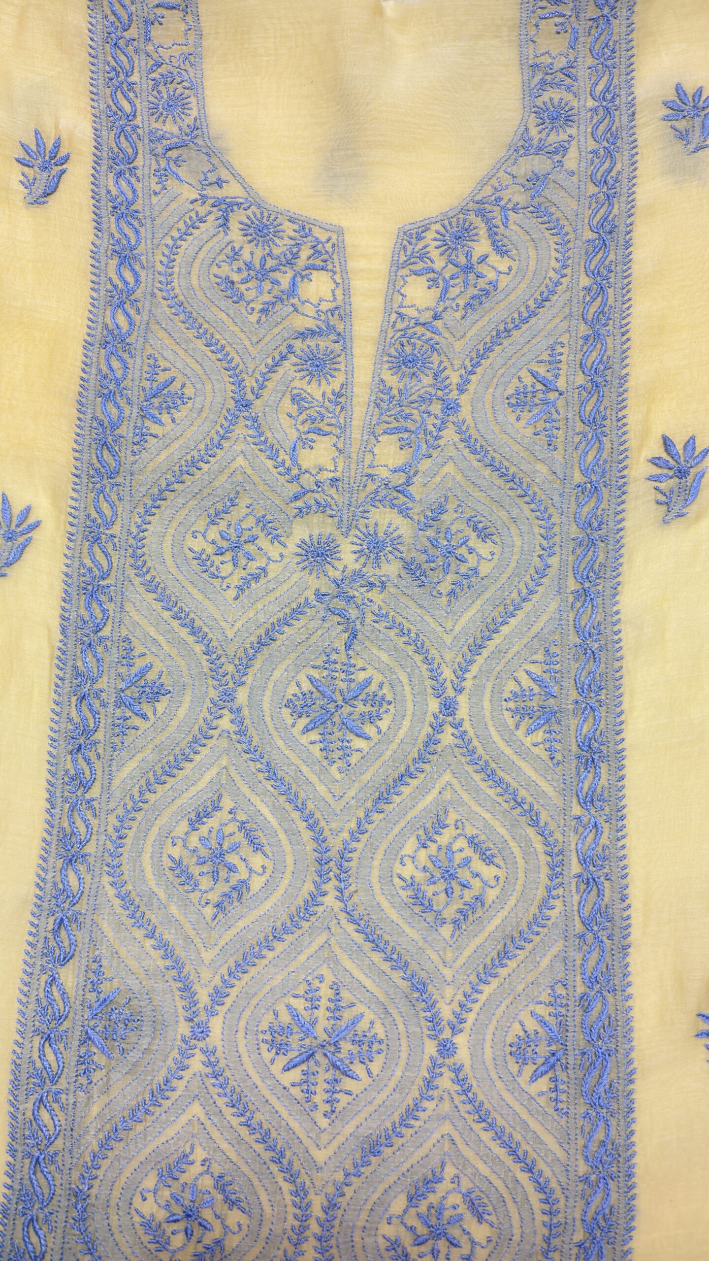 LEMON YELLOW CHANDERI MUL CHIKANKARI KURTA & DUPATTA FABRIC