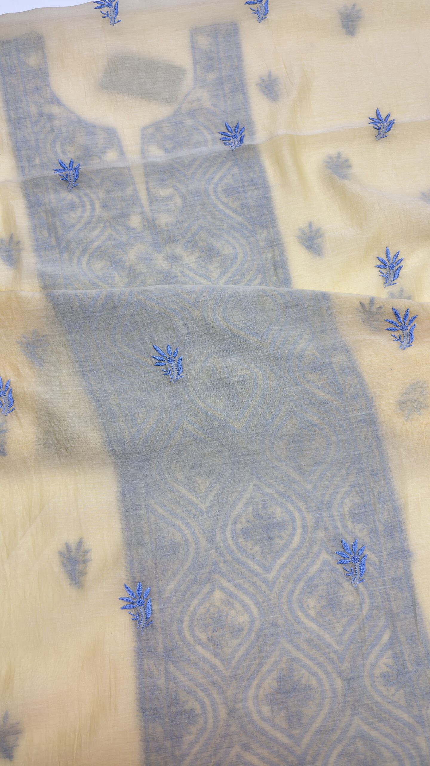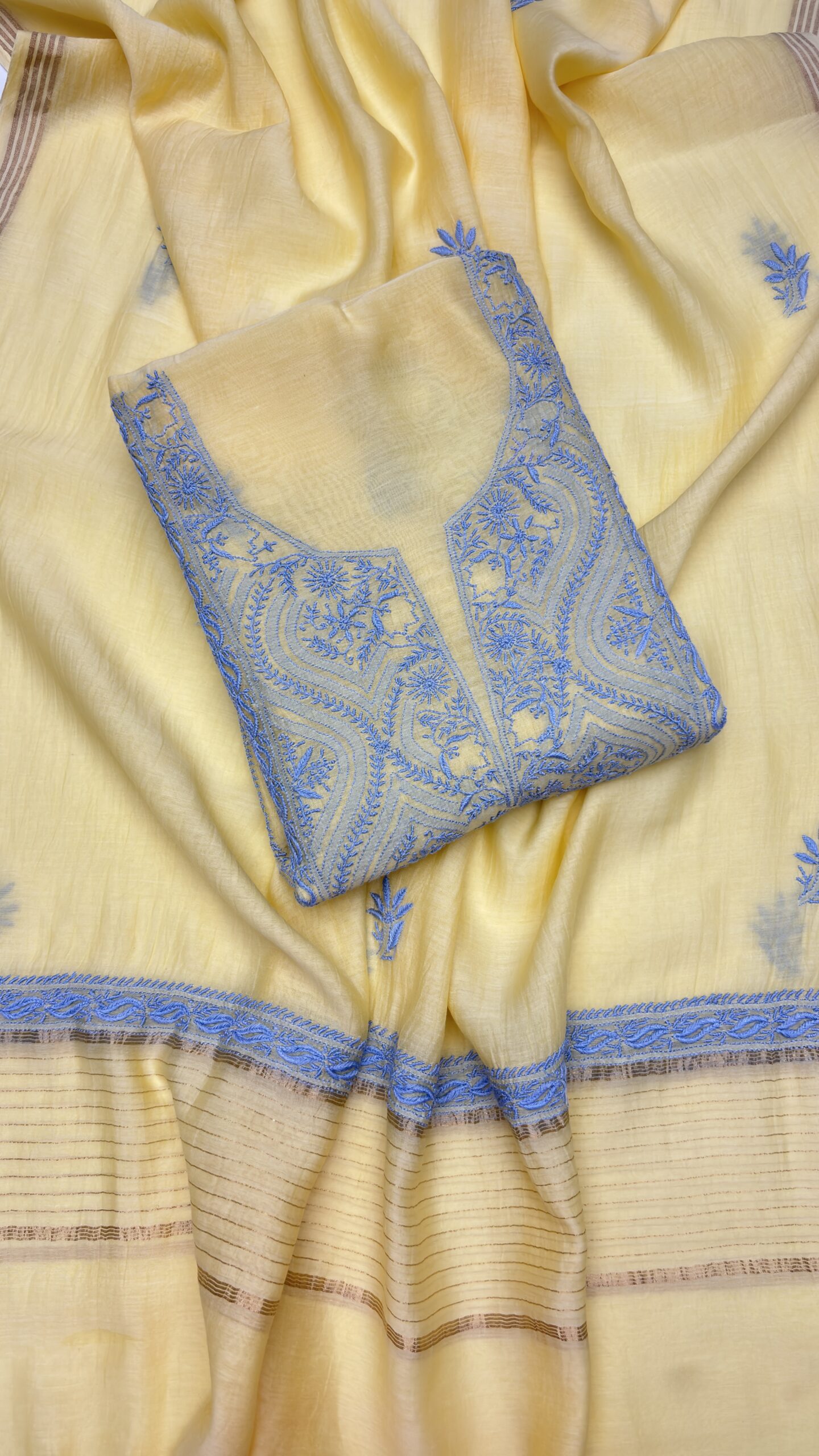 Lemon Yellow Chanderi Mul Chikankari Kurta & Dupatta Fabric is a radiant blend of elegance and craftsmanship.