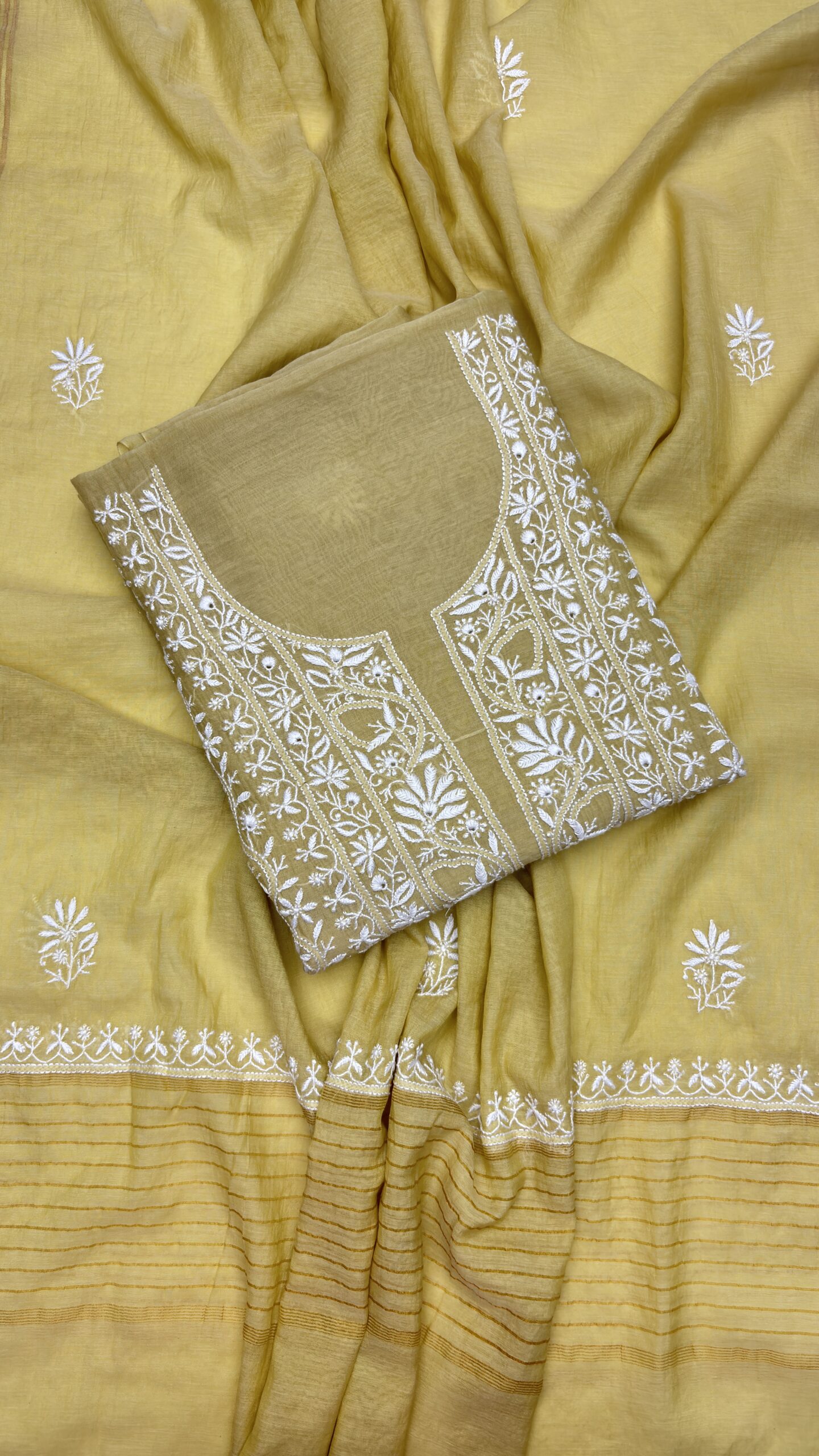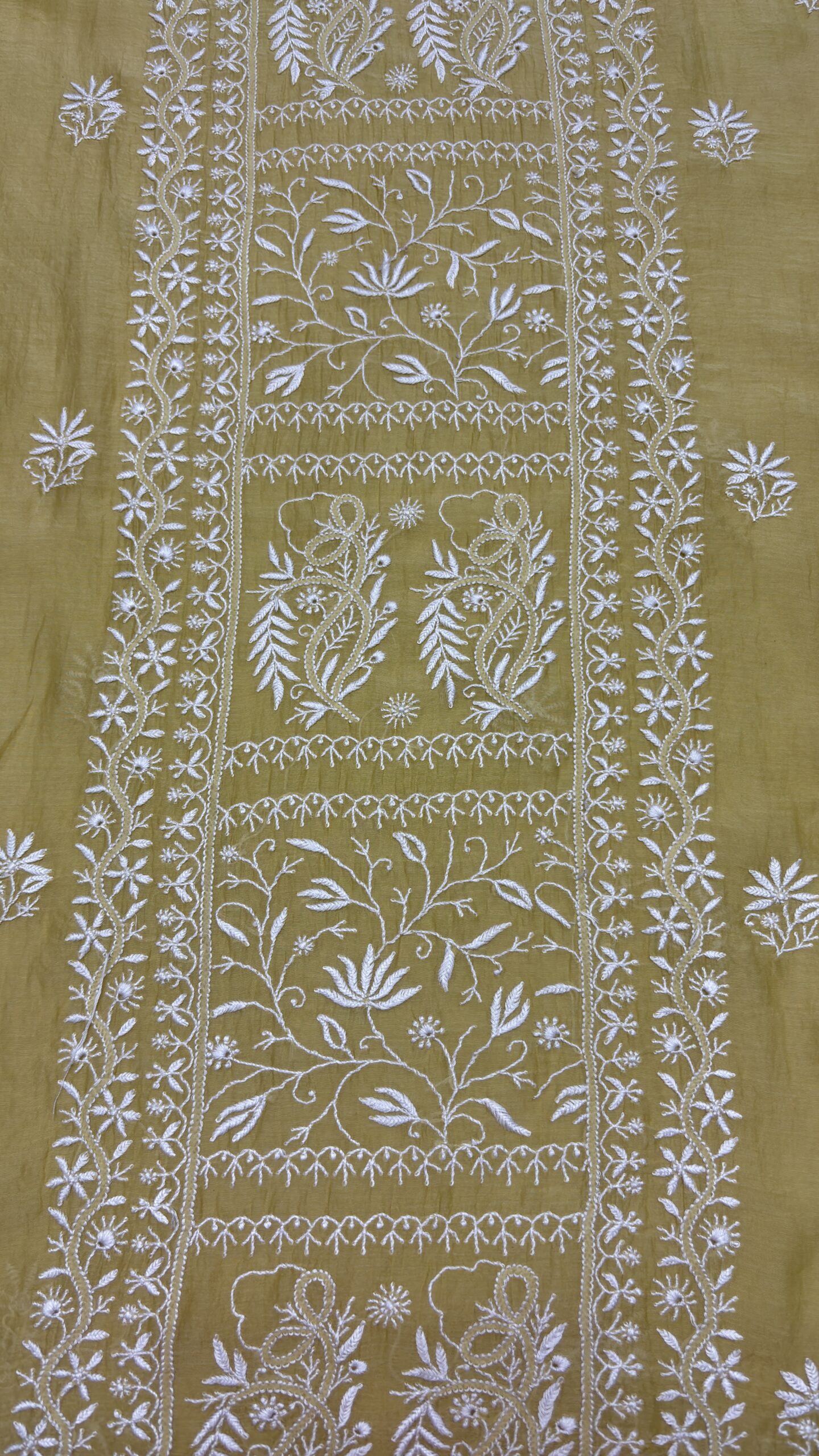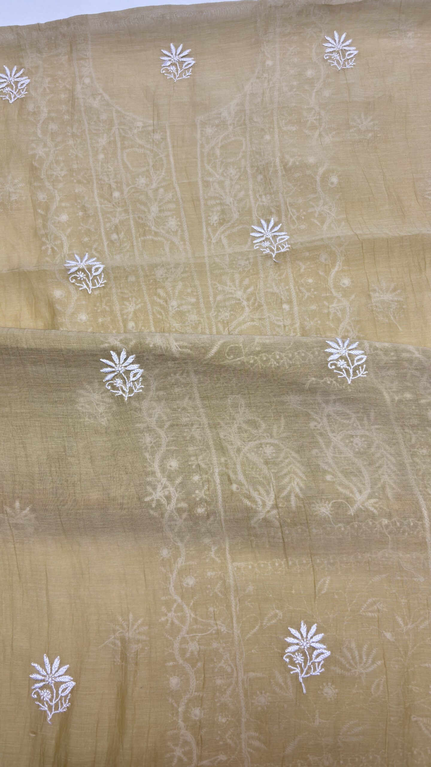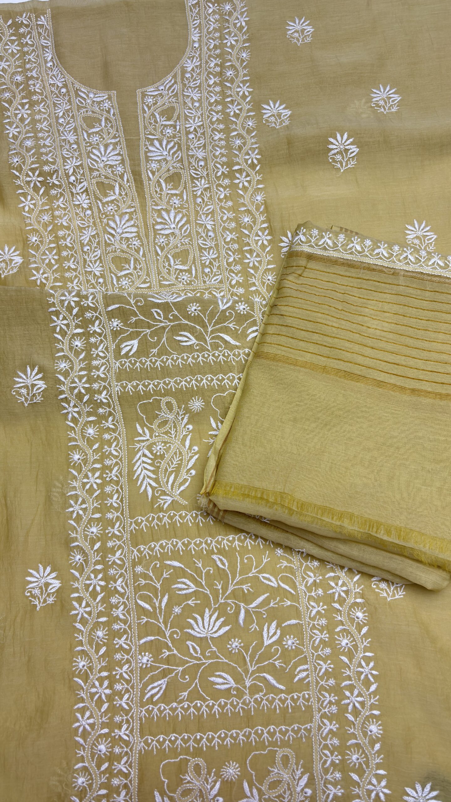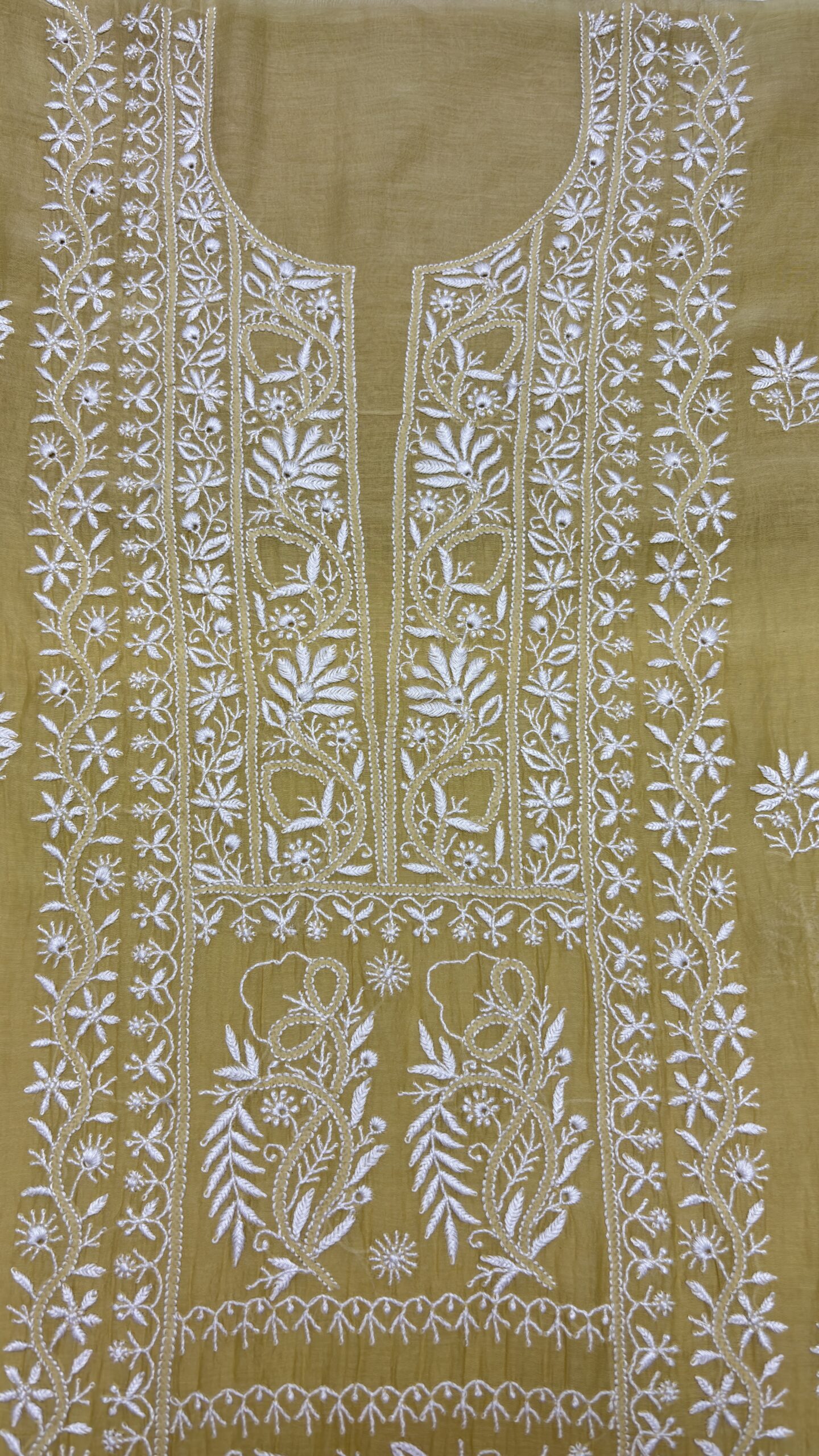 LIGHT CARAMEL CHANDERI MUL CHIKANKARI KURTA & DUPATTA FABRIC