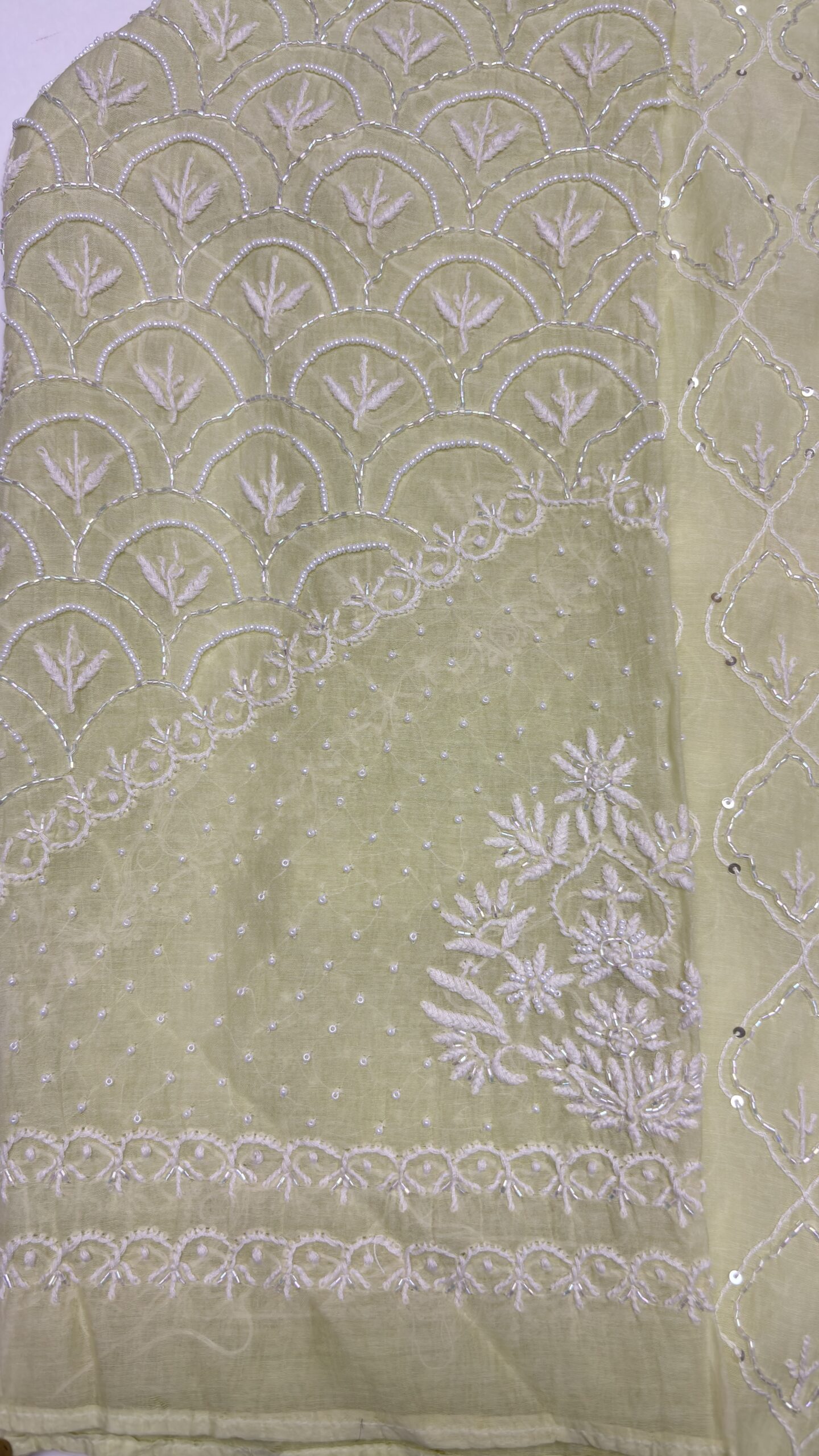 LIME GREEN CHANDERI MUL CHIKANKARI ANARKALI & DUPATTA SET