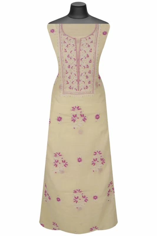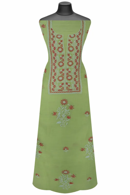 Srajann Hand Embroidered Mal Chanderi Lucknowi Chikankari Unstitched Kurta With Dupatta(SLC1545)