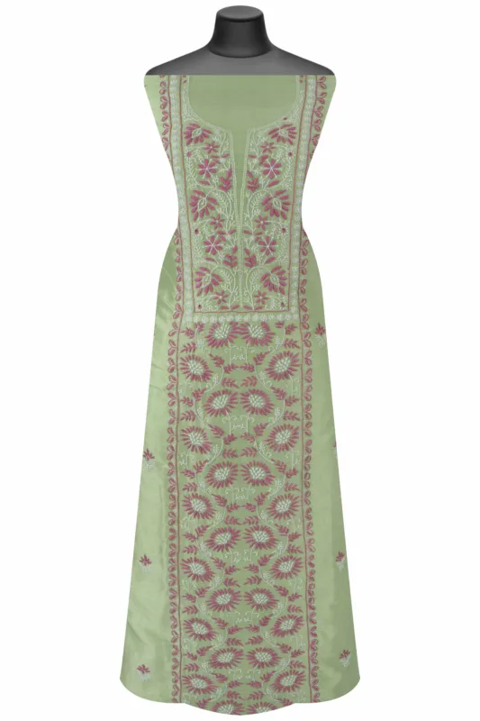 Srajann Hand Embroidered Mal Chanderi Lucknowi Chikankari Unstitched Kurta With Dupatta(SLC1597)
