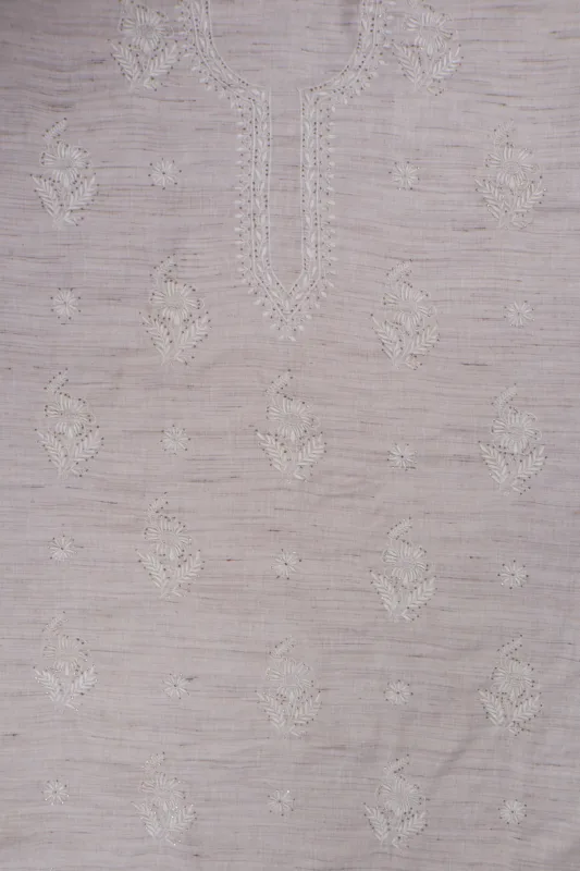Srajann Hand Embroidered Mal Chanderi Lucknowi Chikankari Unstitched Kurta With Dupatta(SLC1618)