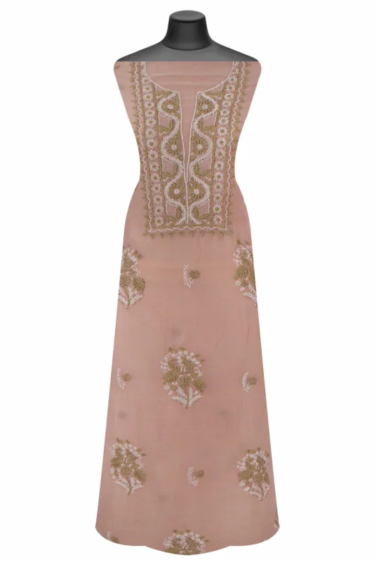 Srajann Hand Embroidered Mal Chanderi Lucknowi Chikankari Unstitched Kurta With Dupatta(SLC1633)