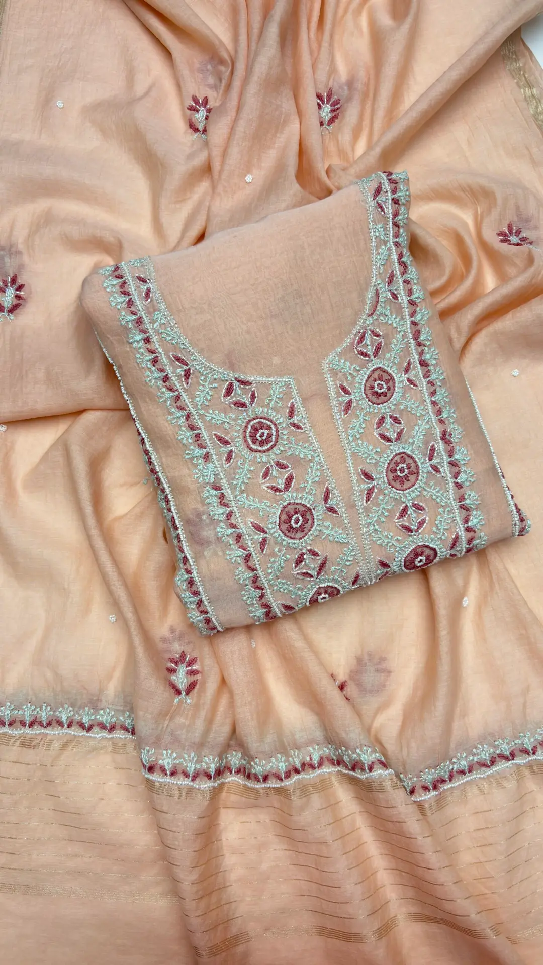 Peach Latte Chanderi Mul Chikankari Kurta & Dupatta Fabric, crafted for effortless elegance.