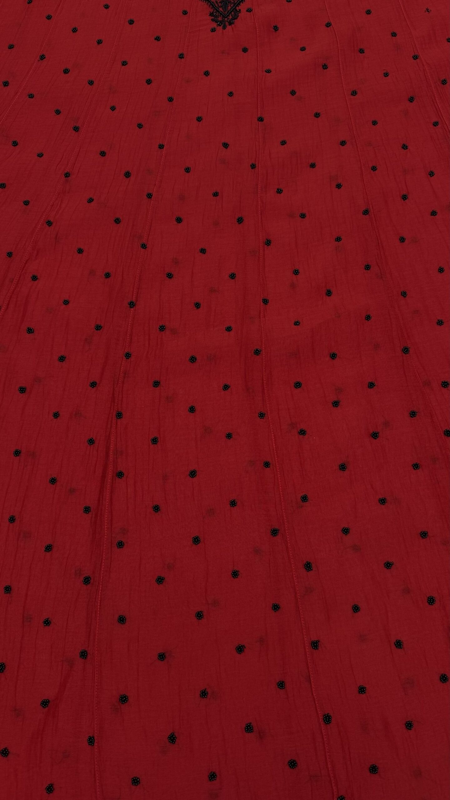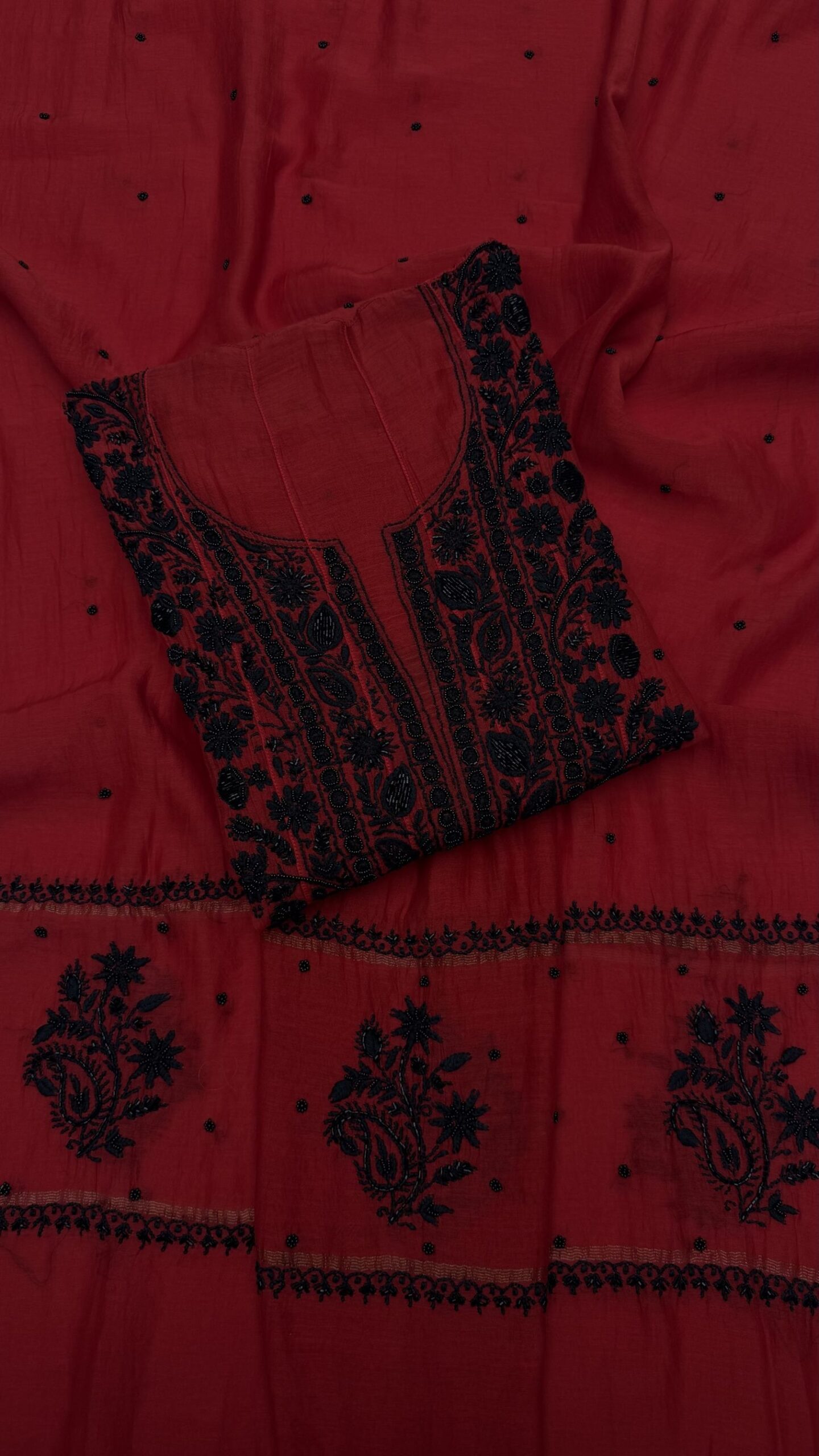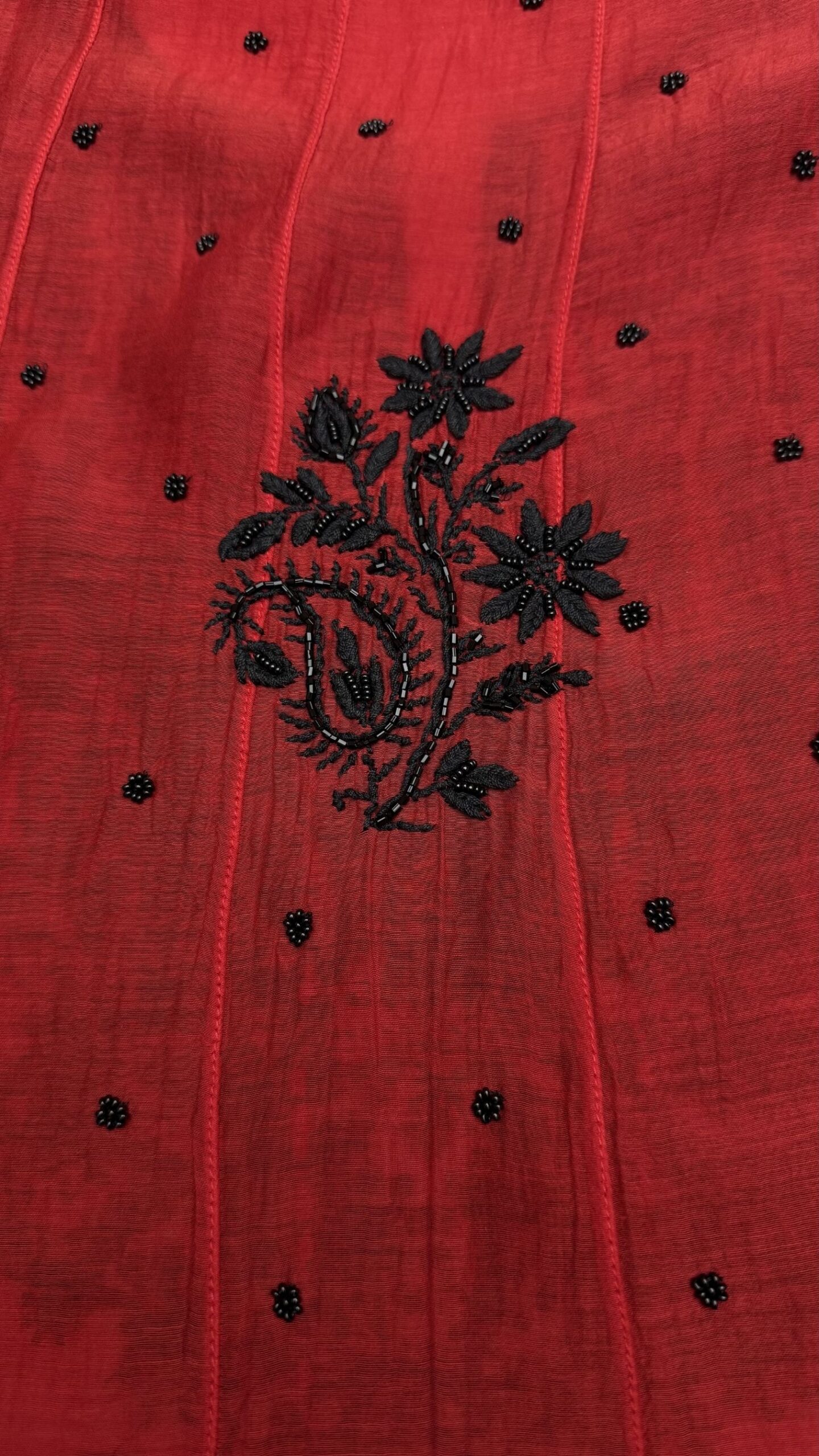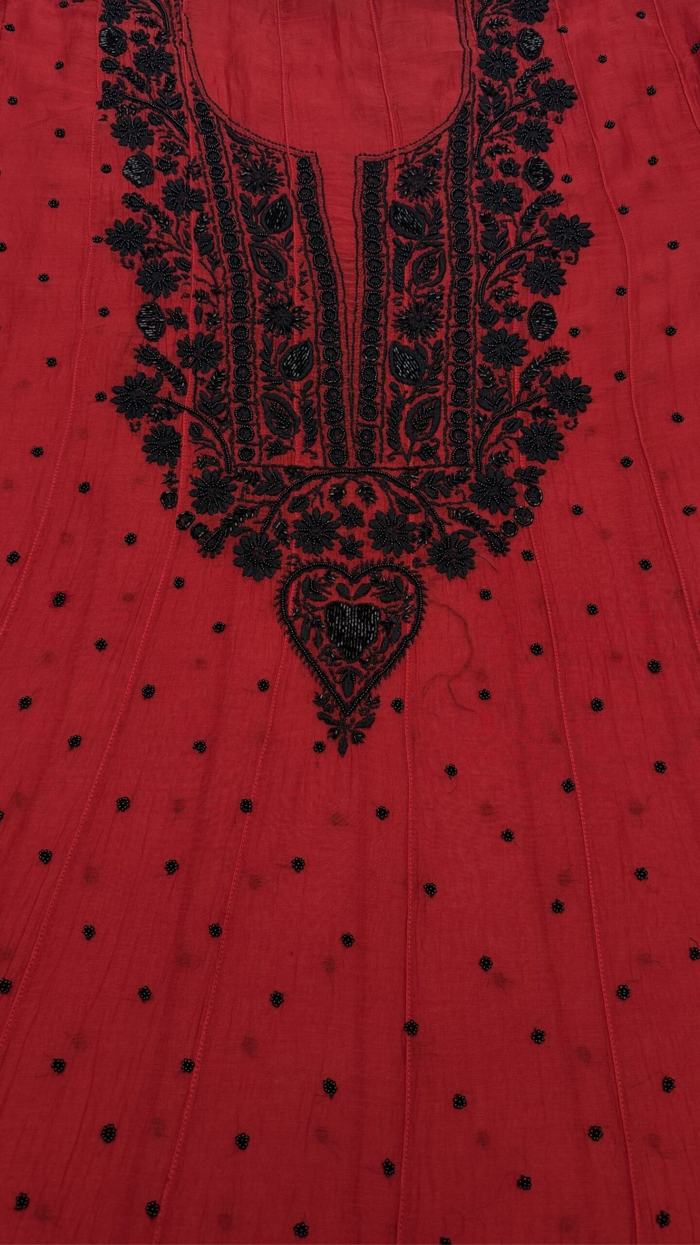 RED & BLACK CHANDERI MUL CHIKANKARI ANARKALI & DUPATTA SET
