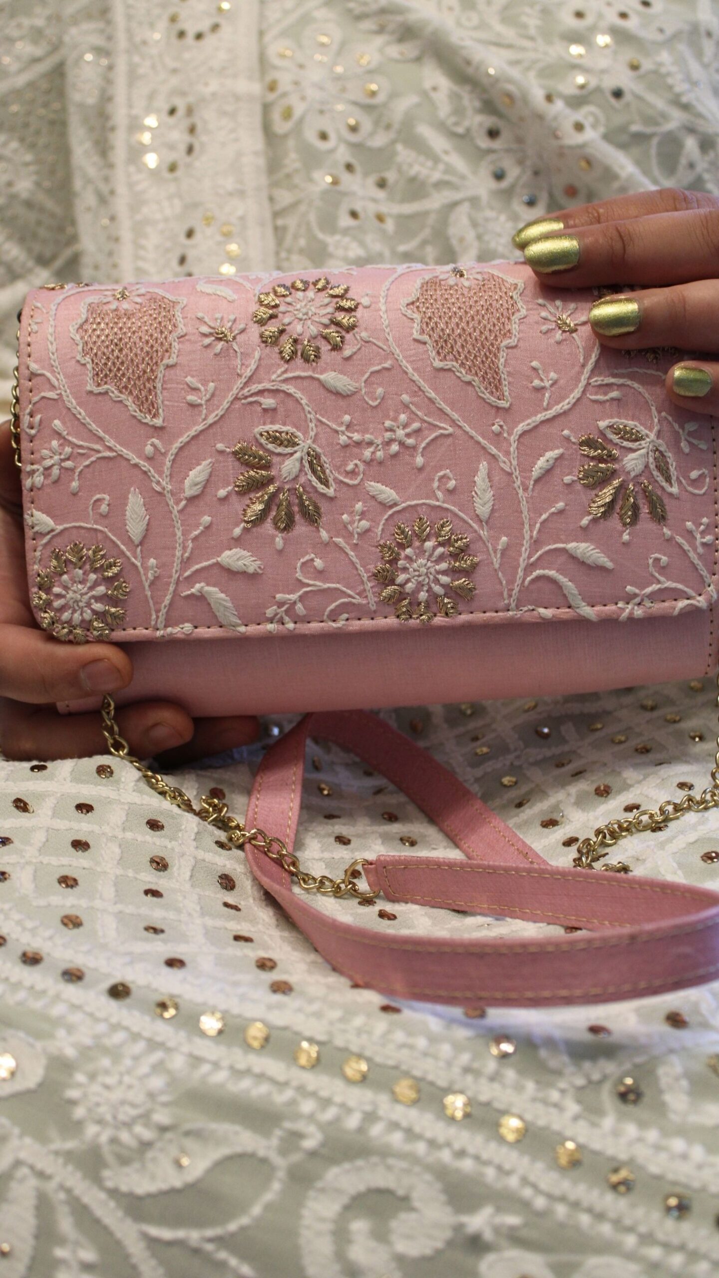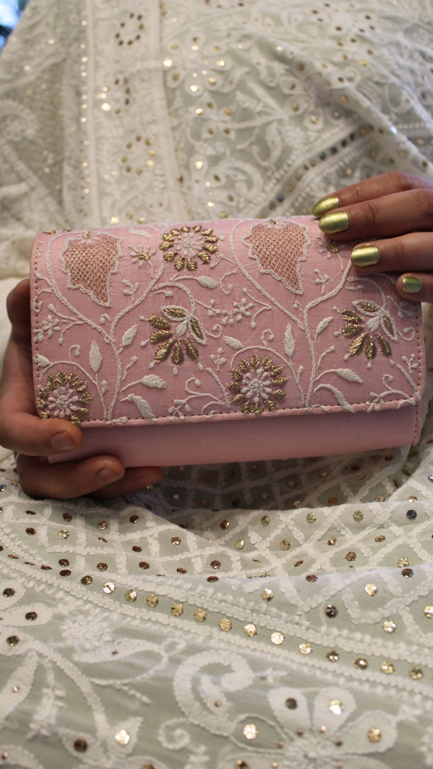 ROSE PINK CHIKANKARI CLUTCH