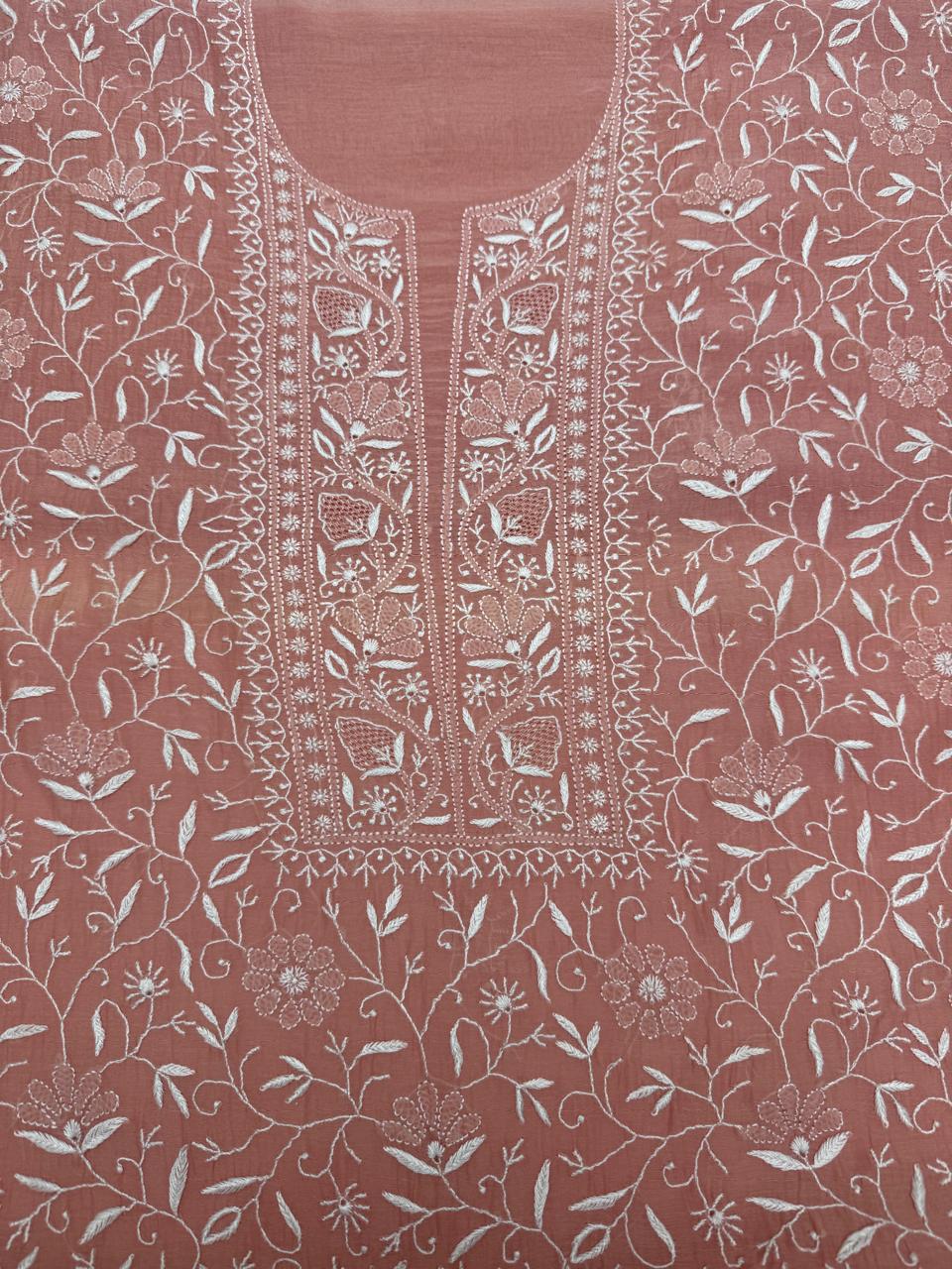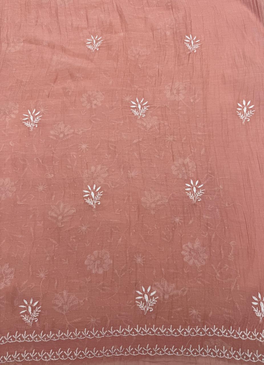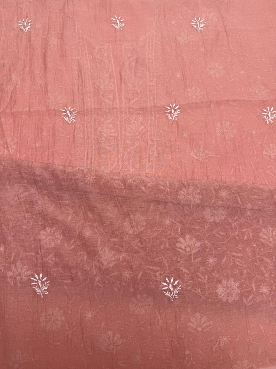 ROSEGOLD PEACH CHANDERI MUL CHIKANKARI KURTA & DUPATTA FABRIC