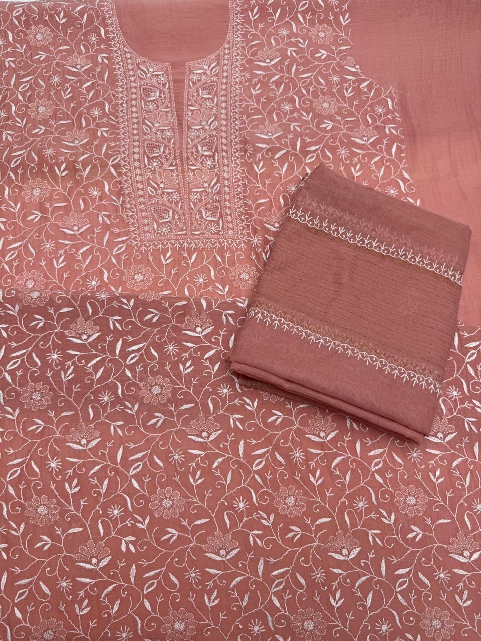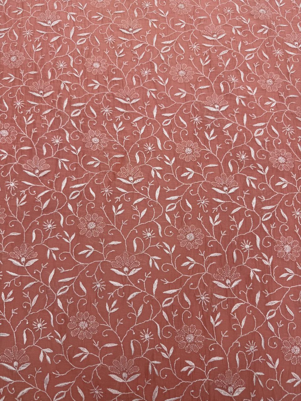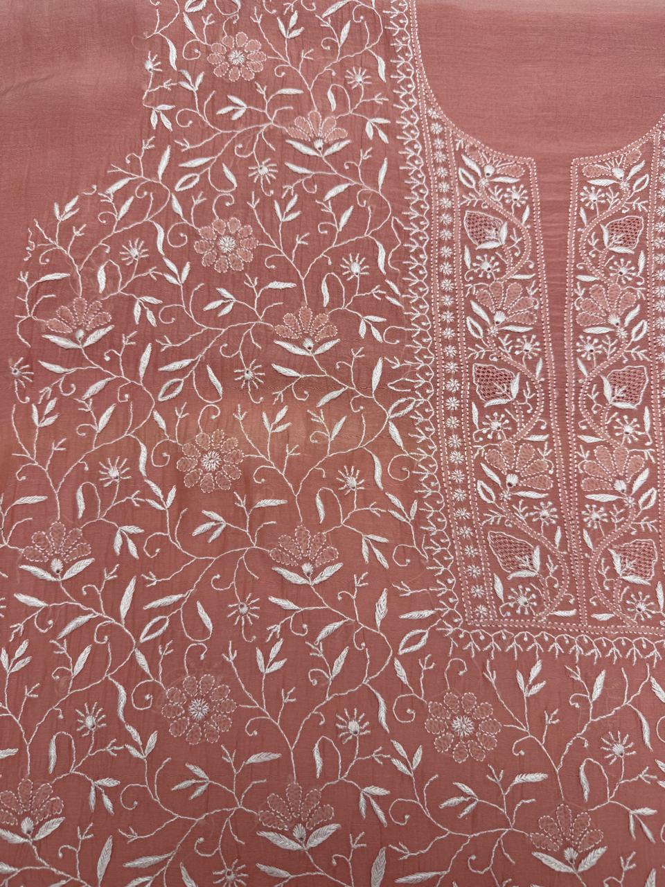 ROSEGOLD PEACH CHANDERI MUL CHIKANKARI KURTA & DUPATTA FABRIC