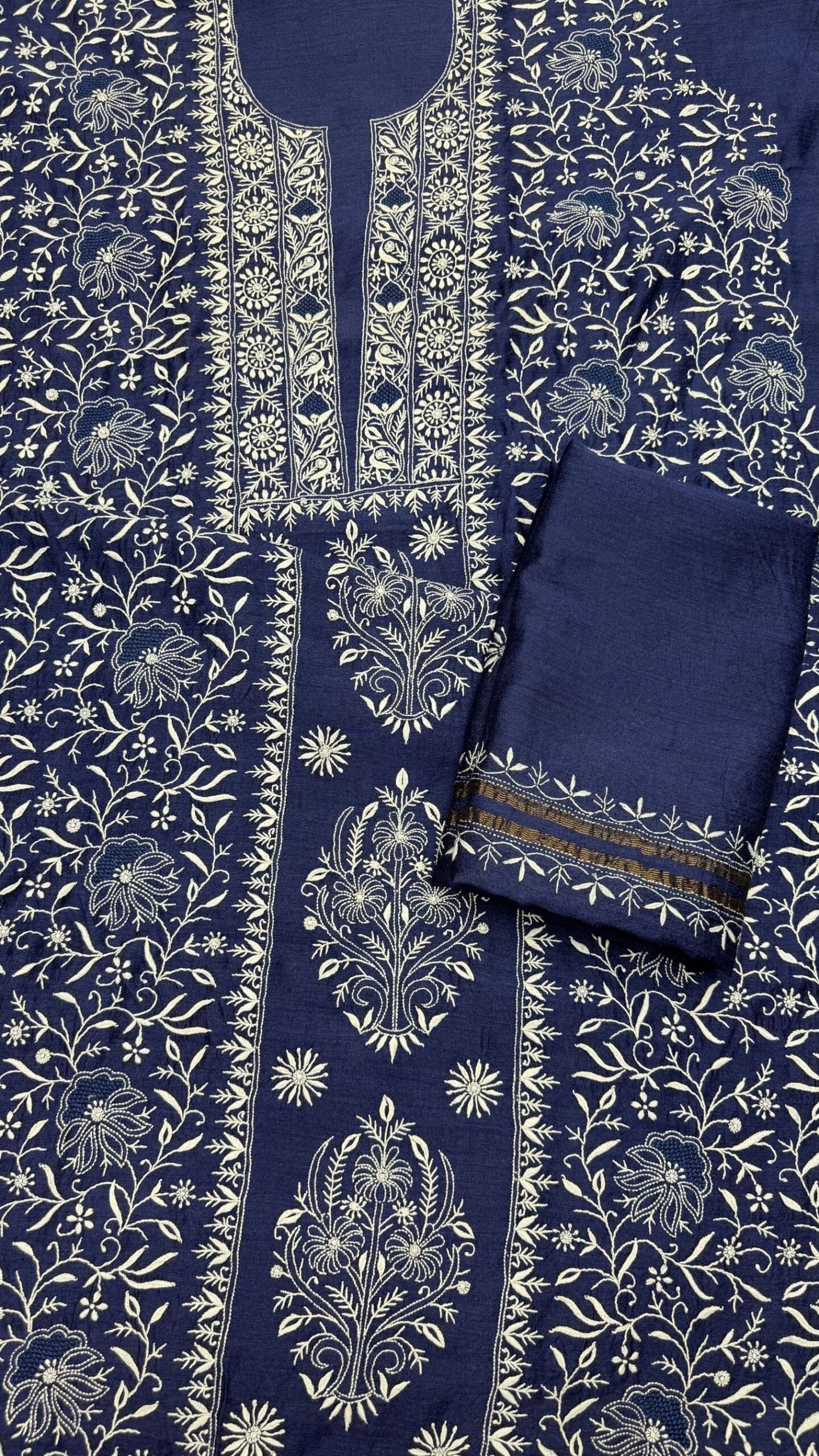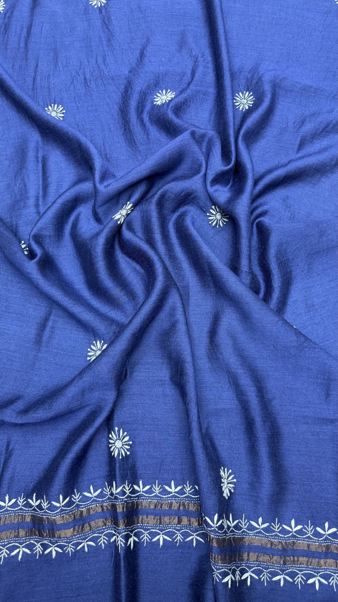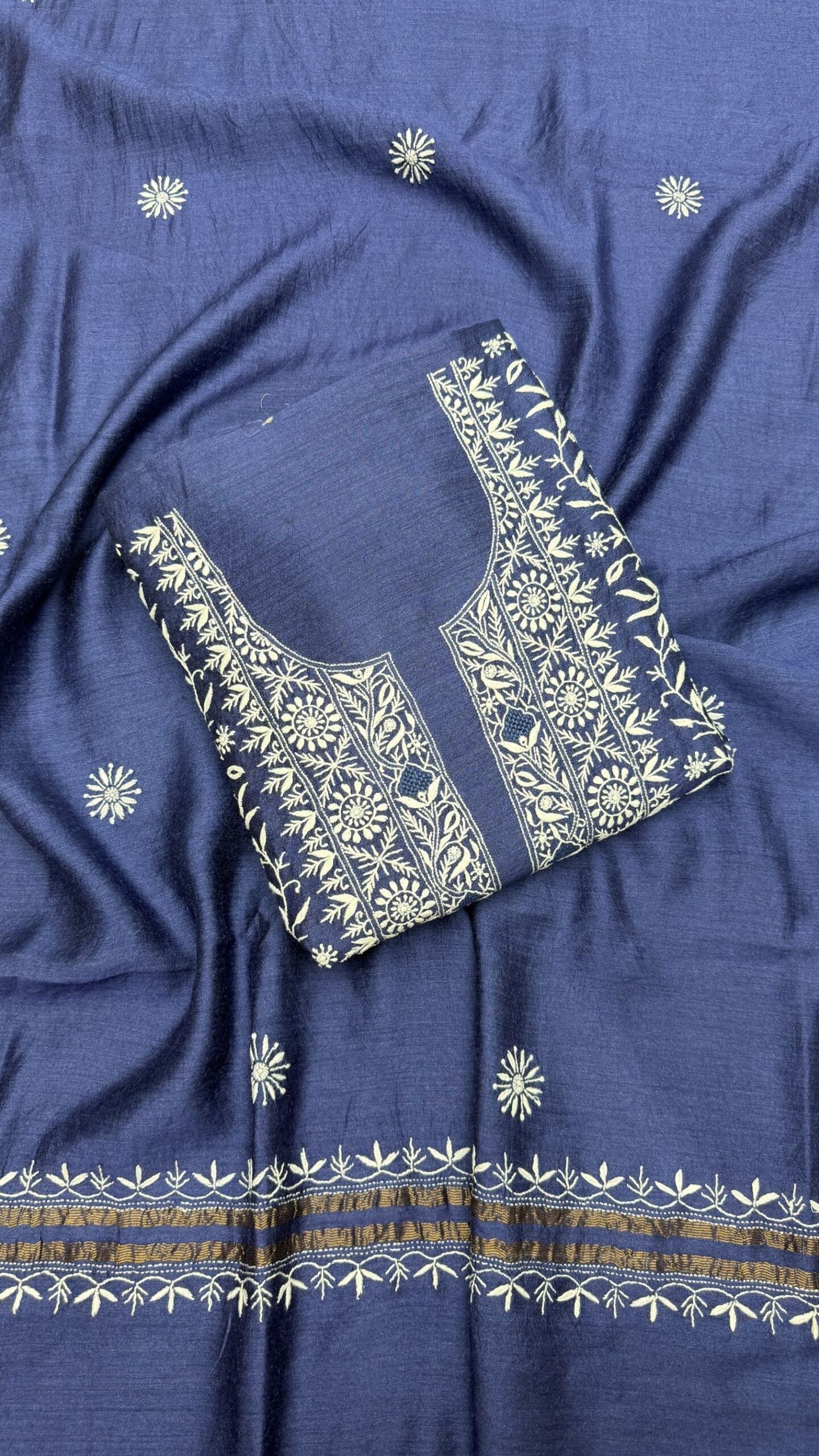 ROYAL BLUE PURE & PREMIUM MONGA SILK CHIKANKARI KURTA & DUPATTA SET