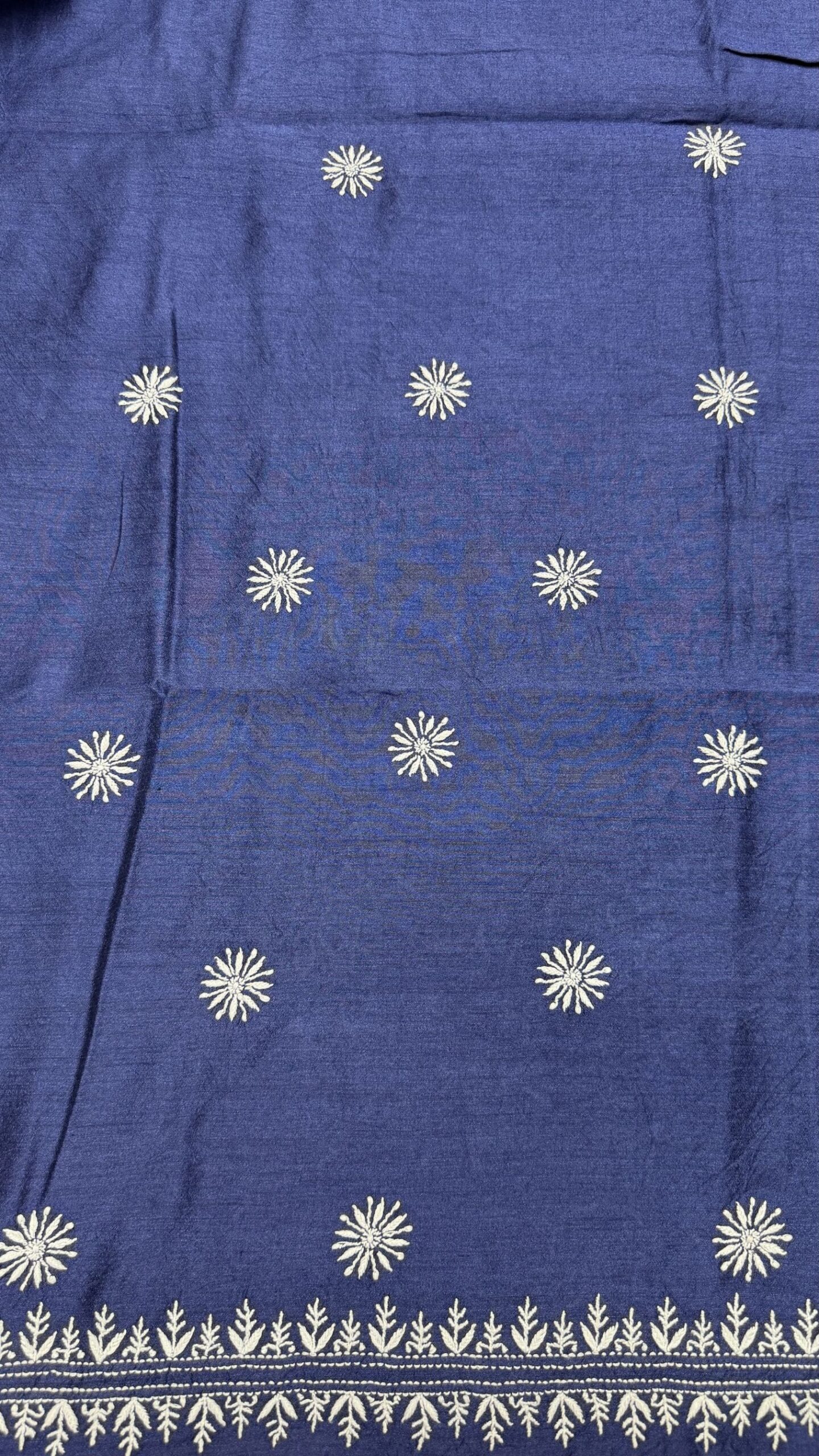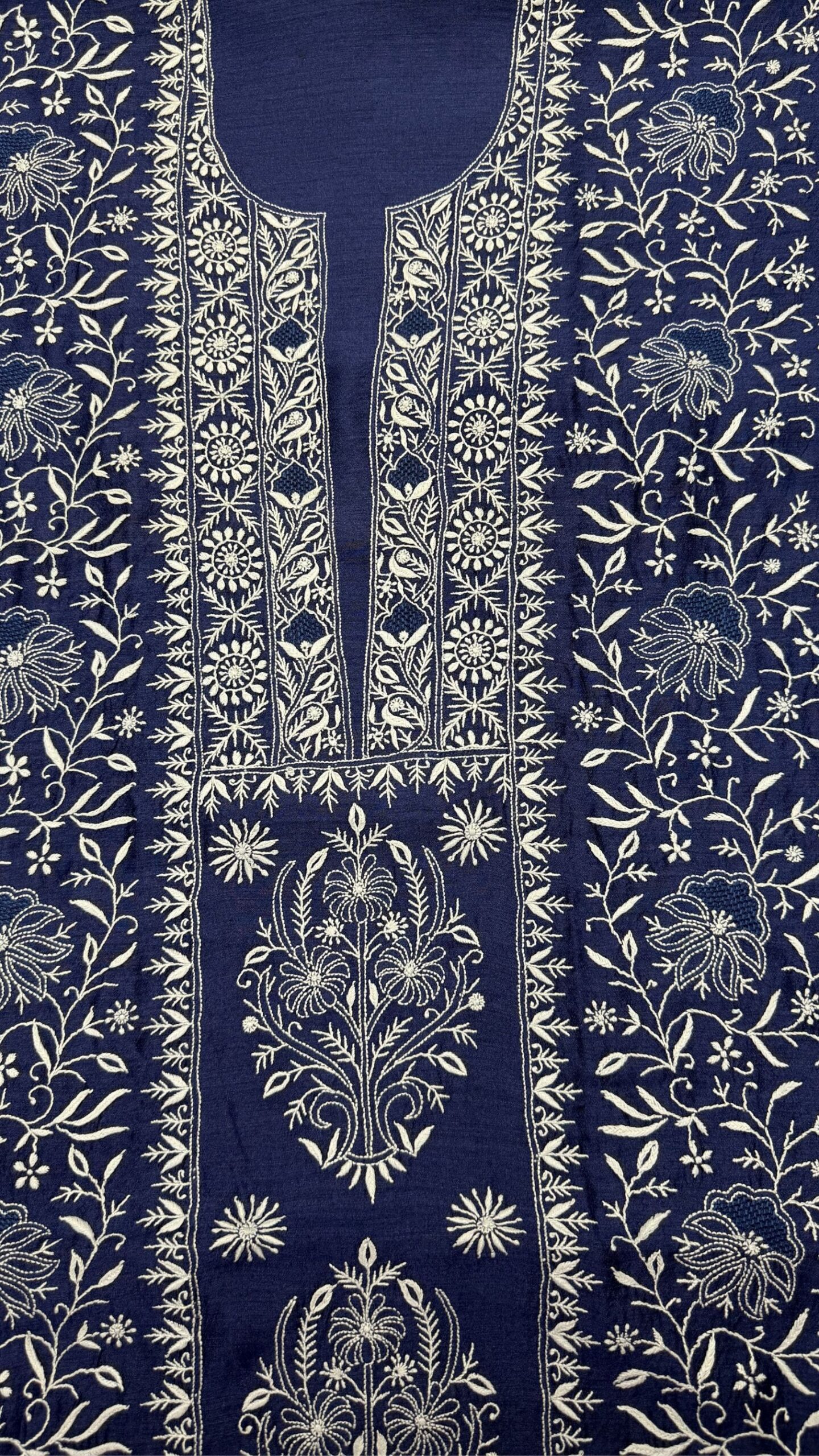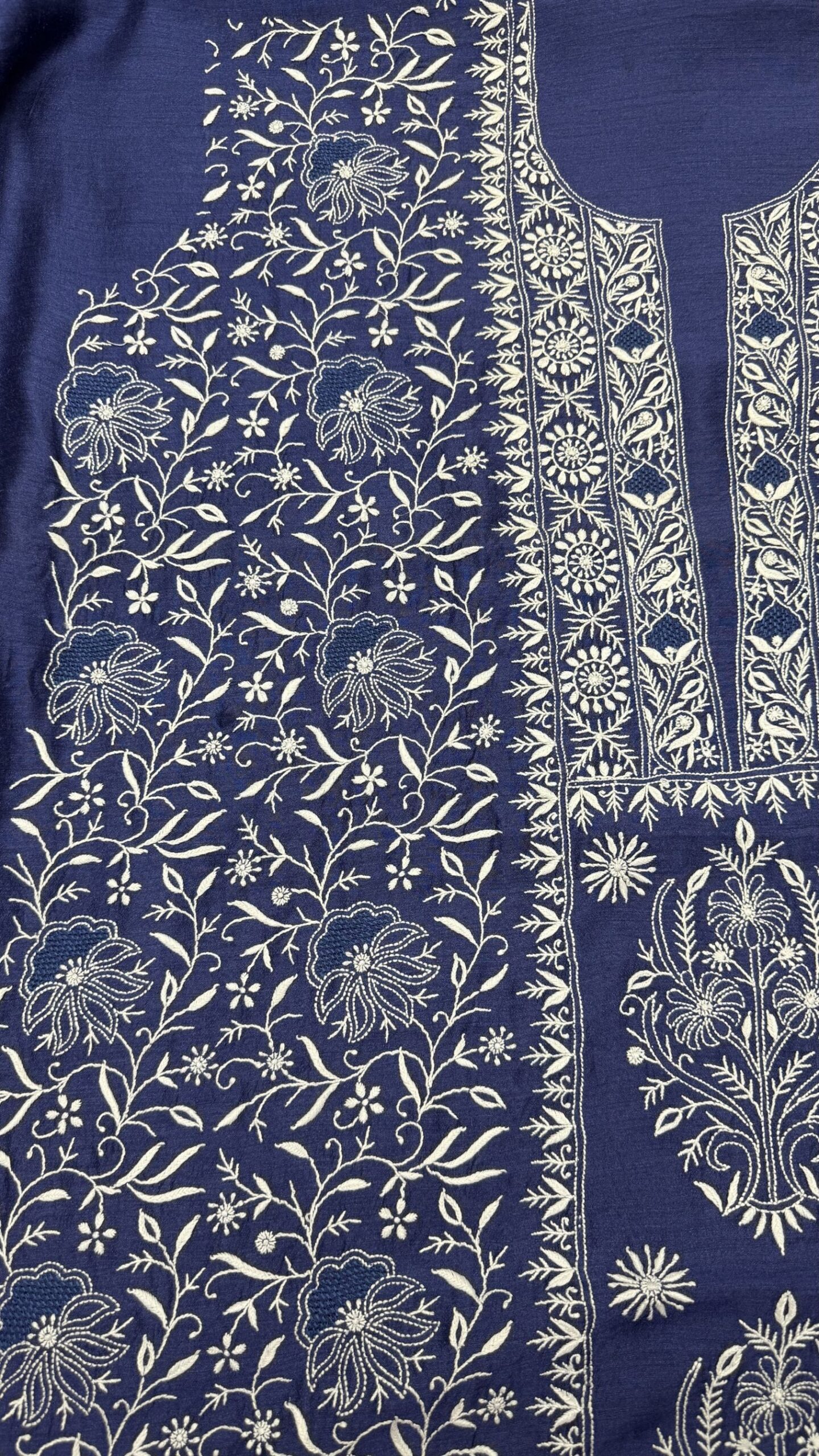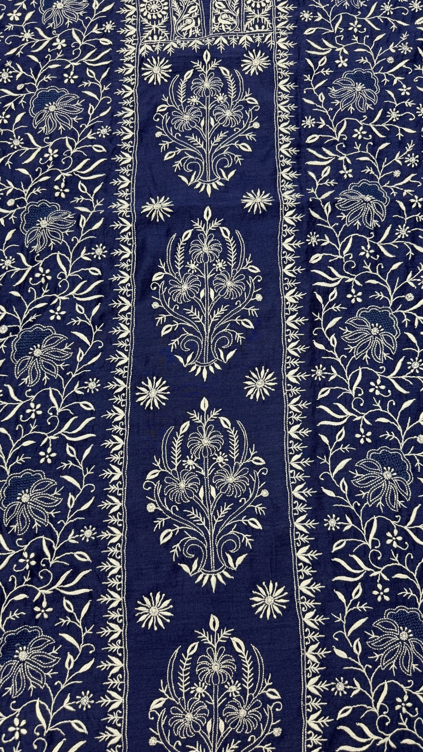 ROYAL BLUE PURE & PREMIUM MONGA SILK CHIKANKARI KURTA & DUPATTA SET