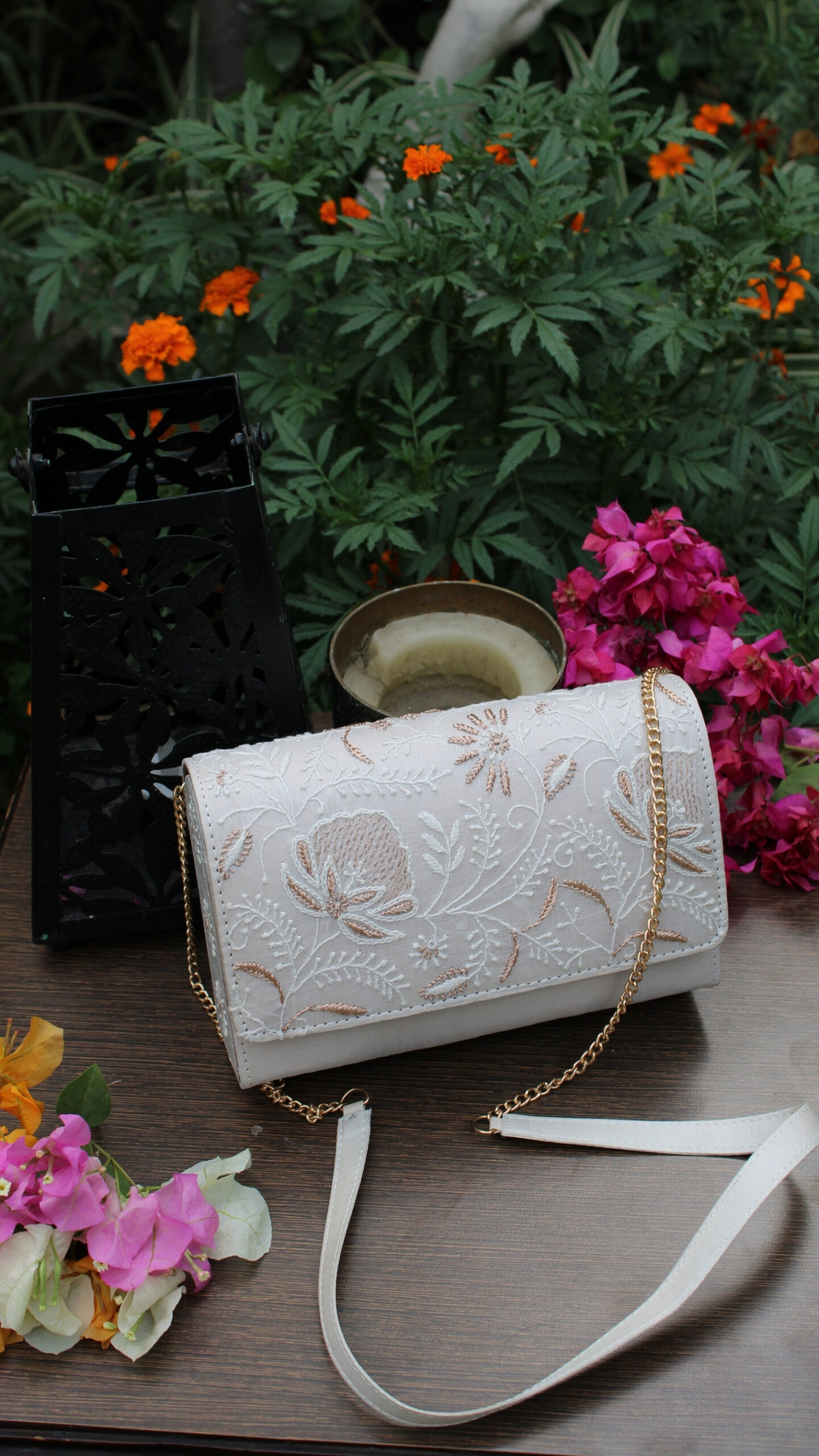 Add a touch of refined elegance to your look with this Silver Grey Chikankari Clutch, crafted to perfection with timeless artistry. Featuring intricate Chikankari embroidery, it beautifully reflects the richness of traditional Lucknowi craftsmanship. The subtle silver grey hue, paired with delicate detailing, lends a graceful shimmer perfect for evening and festive occasions. Designed to be compact yet spacious, it easily holds your essentials like phone, cash, and makeup. Ideal for weddings, parties, or special gatherings, it complements both ethnic and fusion outfits effortlessly. A sophisticated accessory that also makes for a perfect gifting choice.