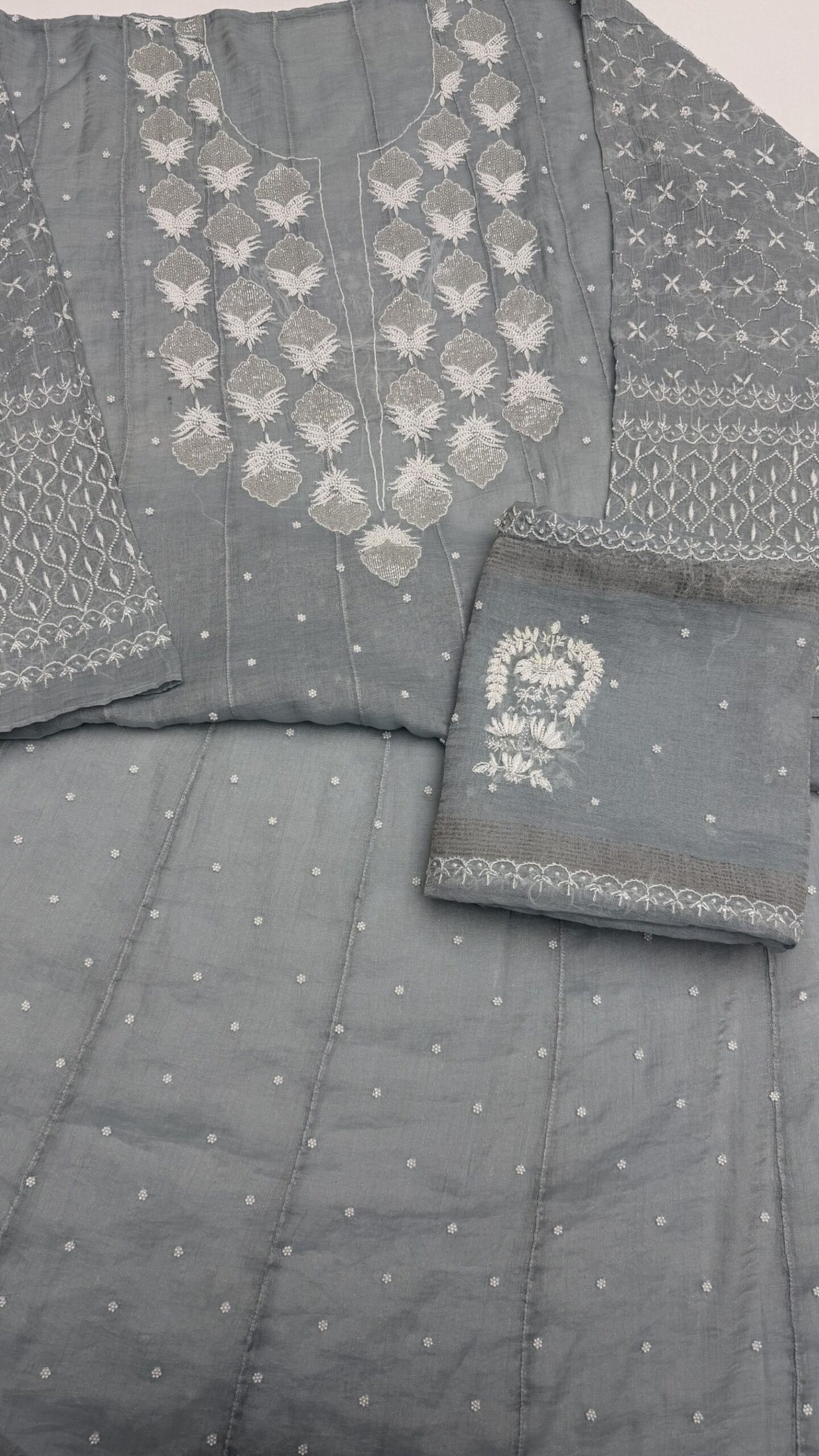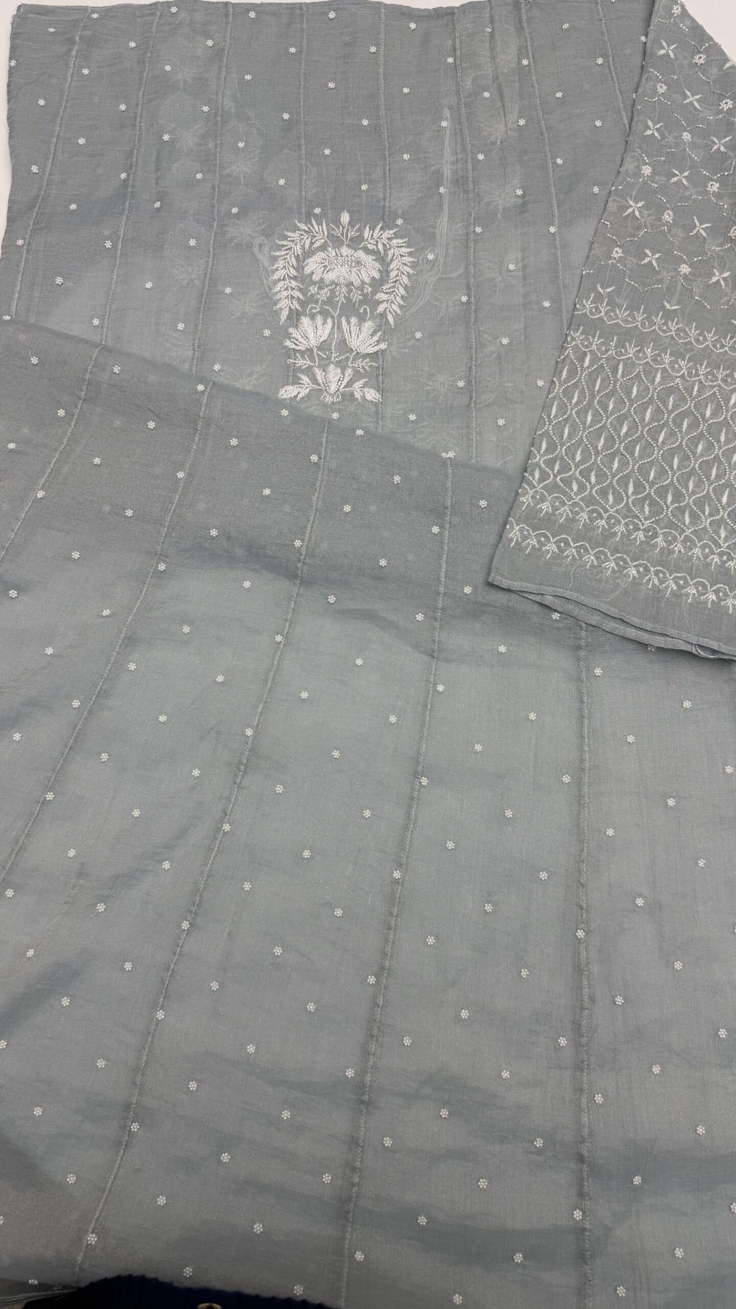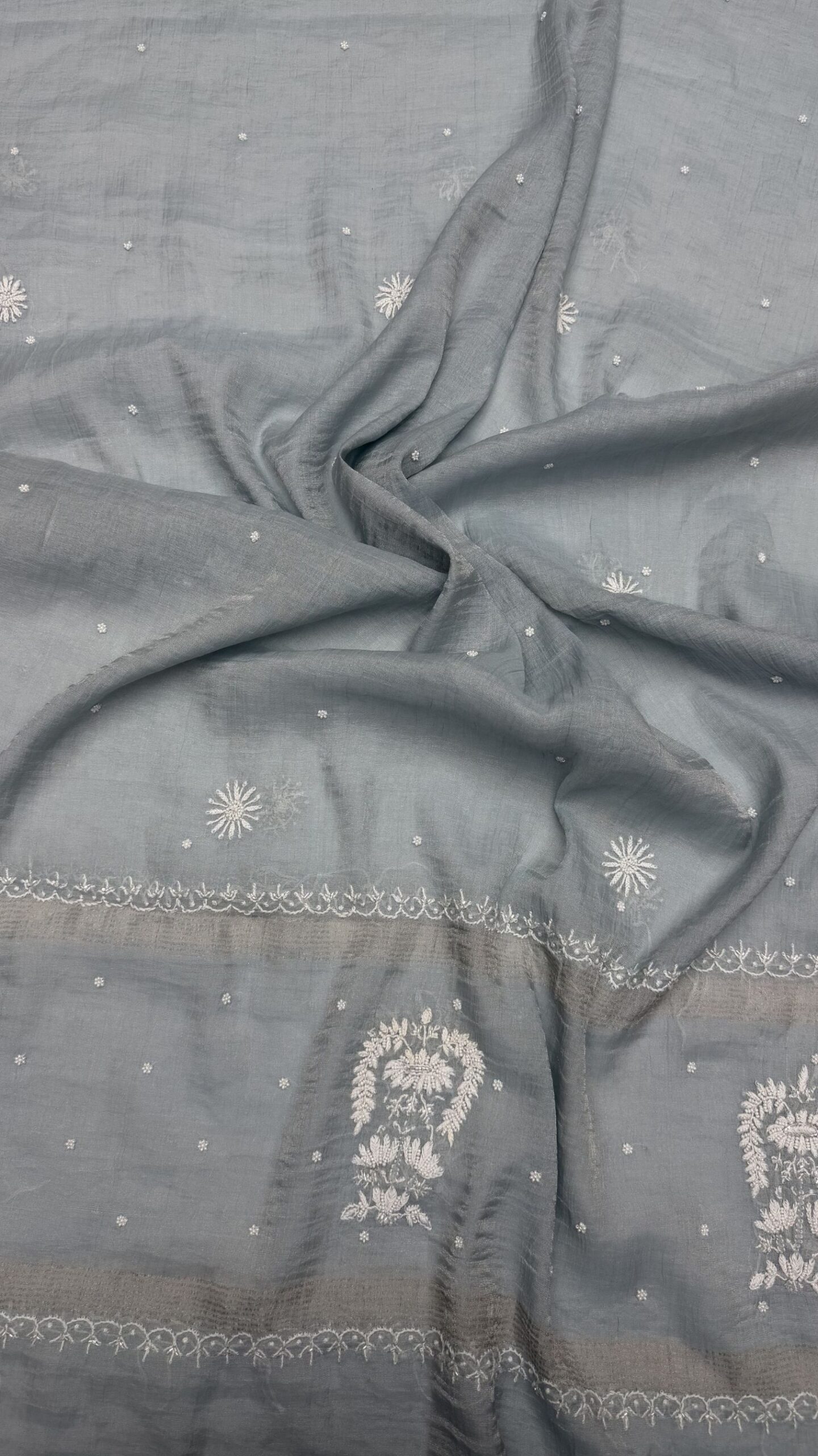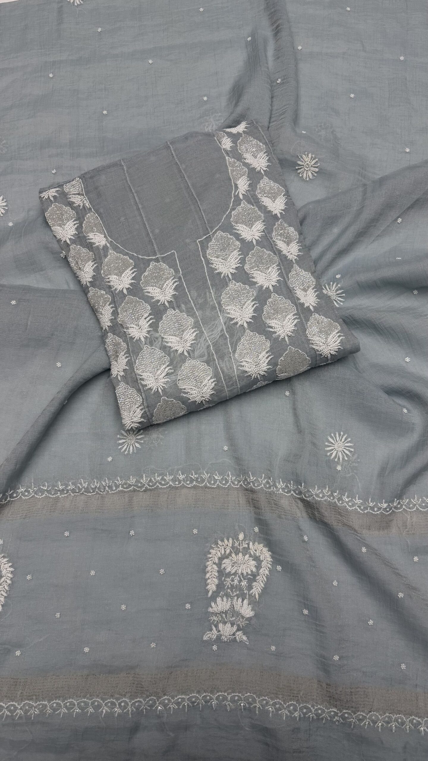 TEAL BLUE PURE & PREMIUM TISSUE CHIKANKARI ANARKALI & DUPATTA SET