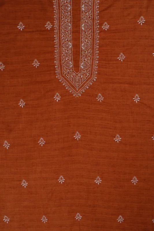 Srajann Hand Embroidered White Pure Georgette Lucknowi Chikankari Unstitched Men’s Kurta Piece (SLC1154)