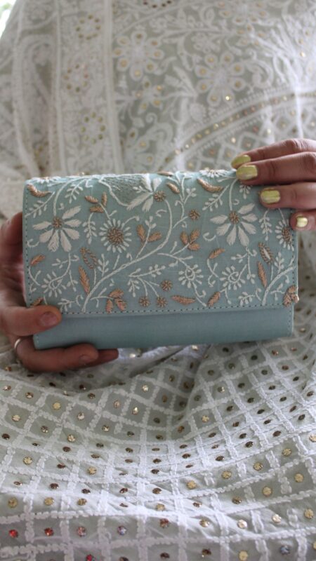 Brighten up your look with this Yellow Chikankari Clutch, crafted to add a cheerful yet elegant touch. Adorned with intricate Chikankari embroidery, it beautifully reflects the richness of traditional Lucknowi craftsmanship. The vibrant yellow hue brings a fresh and festive appeal, perfect for daytime celebrations and special occasions. Compact yet spacious, it easily carries your essentials like phone, cash, and makeup. Ideal for weddings, festive events, or casual outings, it complements both ethnic and fusion outfits effortlessly. A stylish accessory that also makes for a delightful gifting option.