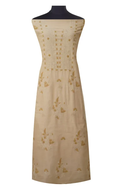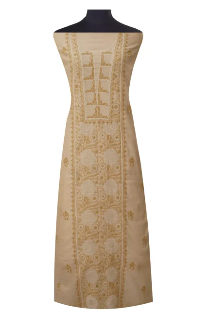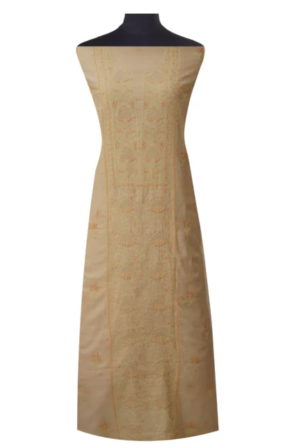 Srajann Hand Embroided Fawn Tissue Lucknowi Chikankari Unstitched Kurta Dupatta Set (SLC1471)