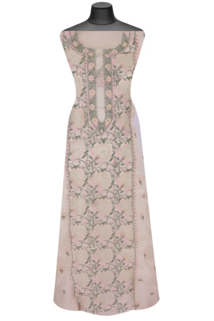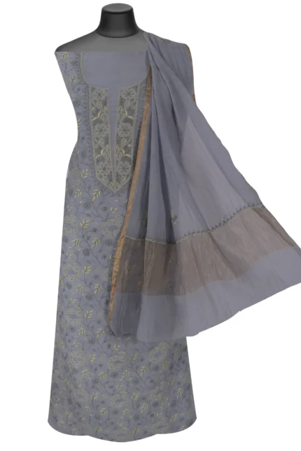 Srajann Hand Embroided Grey Maheshwari Lucknowi Chikankari Unstitched Kurta Dupatta Set (SLC1289)