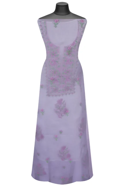 Srajann Hand Embroided Grey Organza Lucknowi Chikankari Unstitched Kurta Dupatta Set (SLC1738)